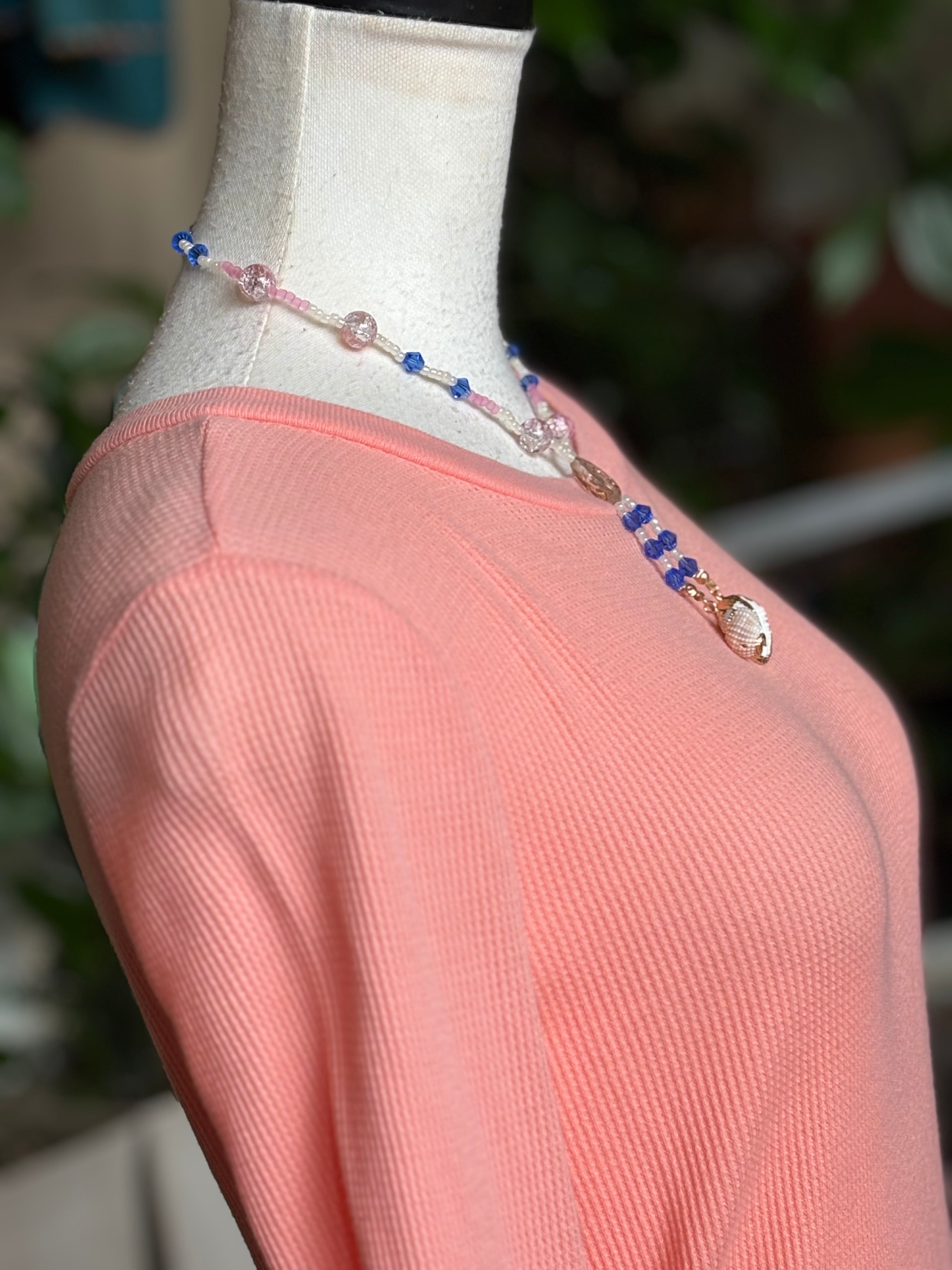◾️ 天然シェルをあしらった、爽やかなカラーリングのビーズネックレス。