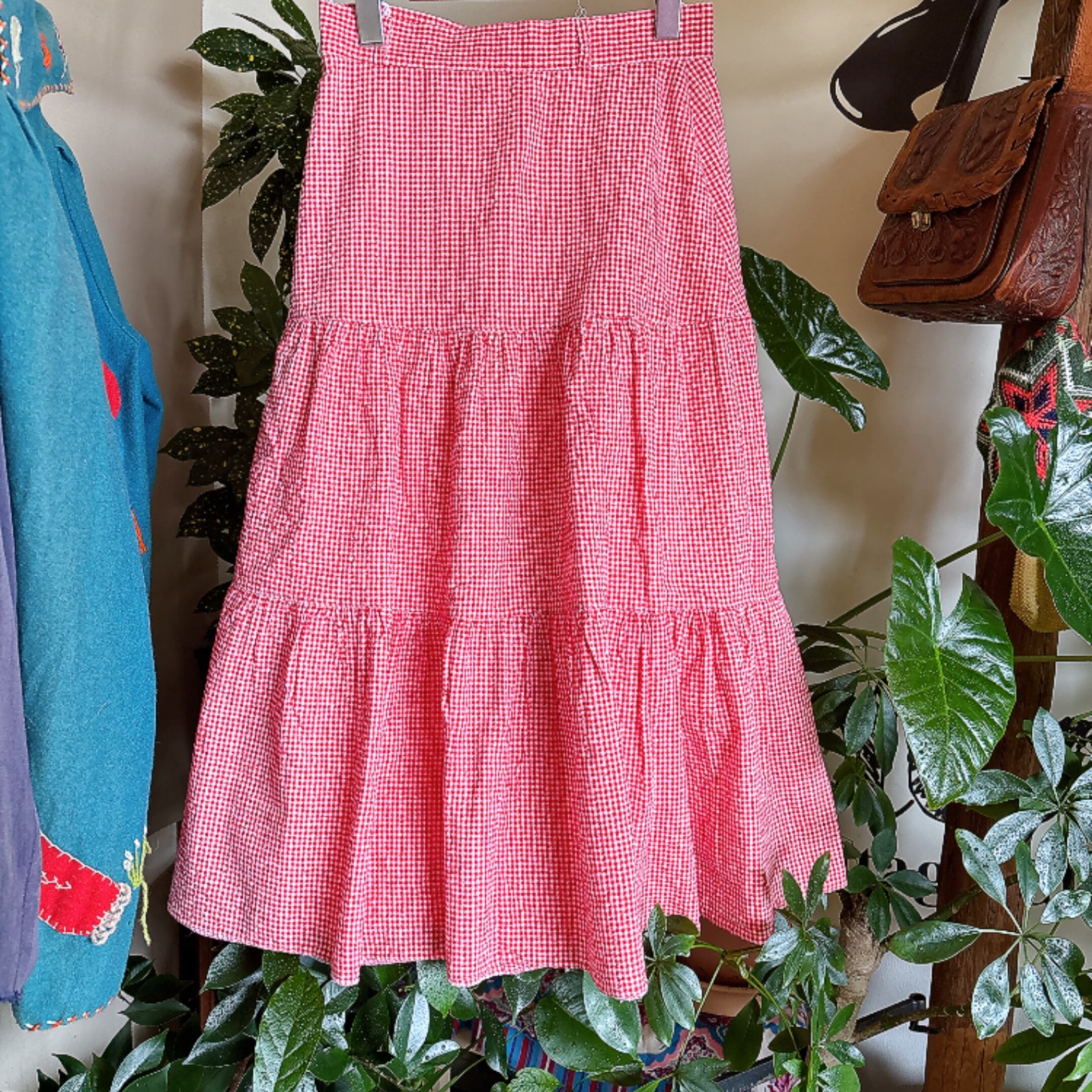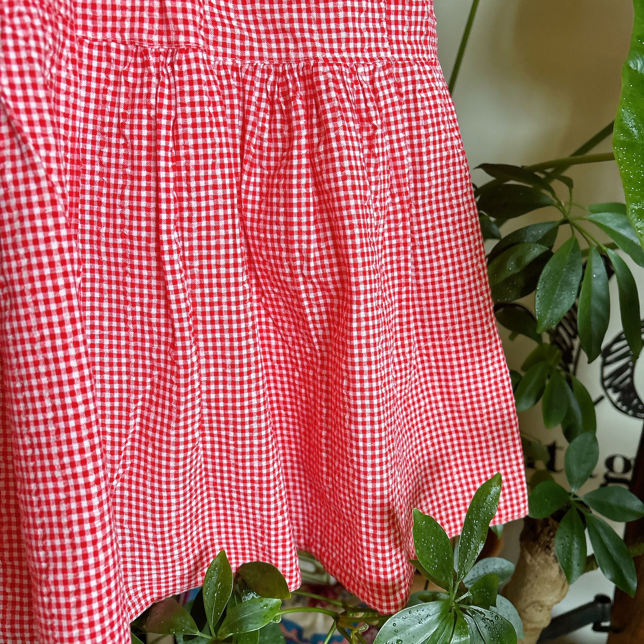 ◾️春夏にピッタリの軽い着用感のスカートです。赤白のカラーリング、ティアード具合がとてもキュート。程よく長めの丈感が幼すぎず大人ビンテージスタイルにも◎。