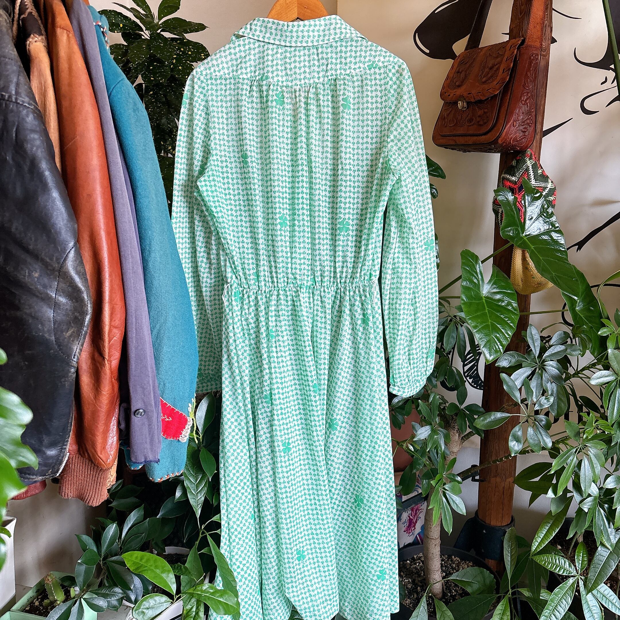 70s ビンテージ クローバープリント シャツ ワンピース