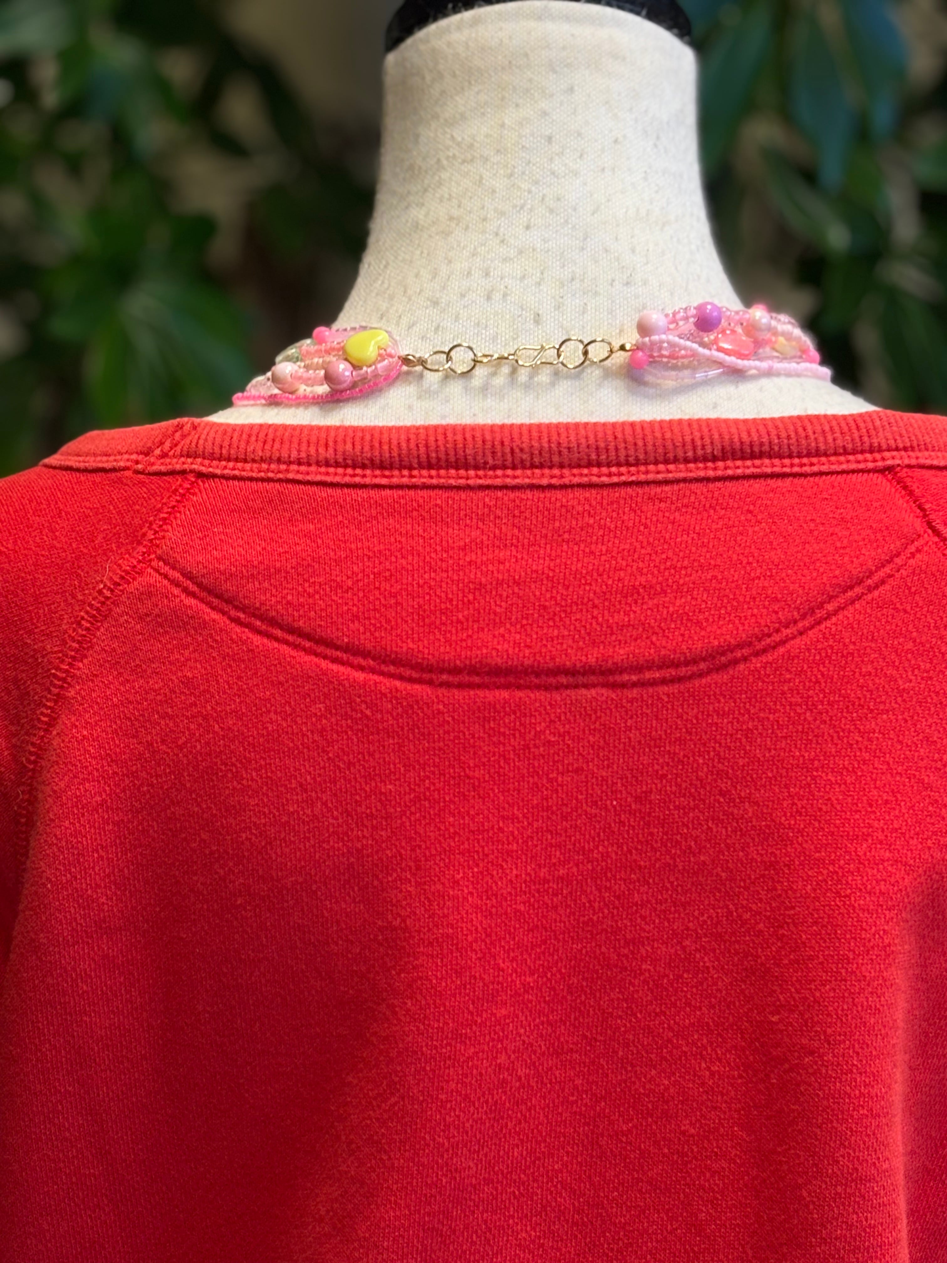 ◾️ パステルピンクを基調とした、マルチストランドデザインのビーズネックレス。