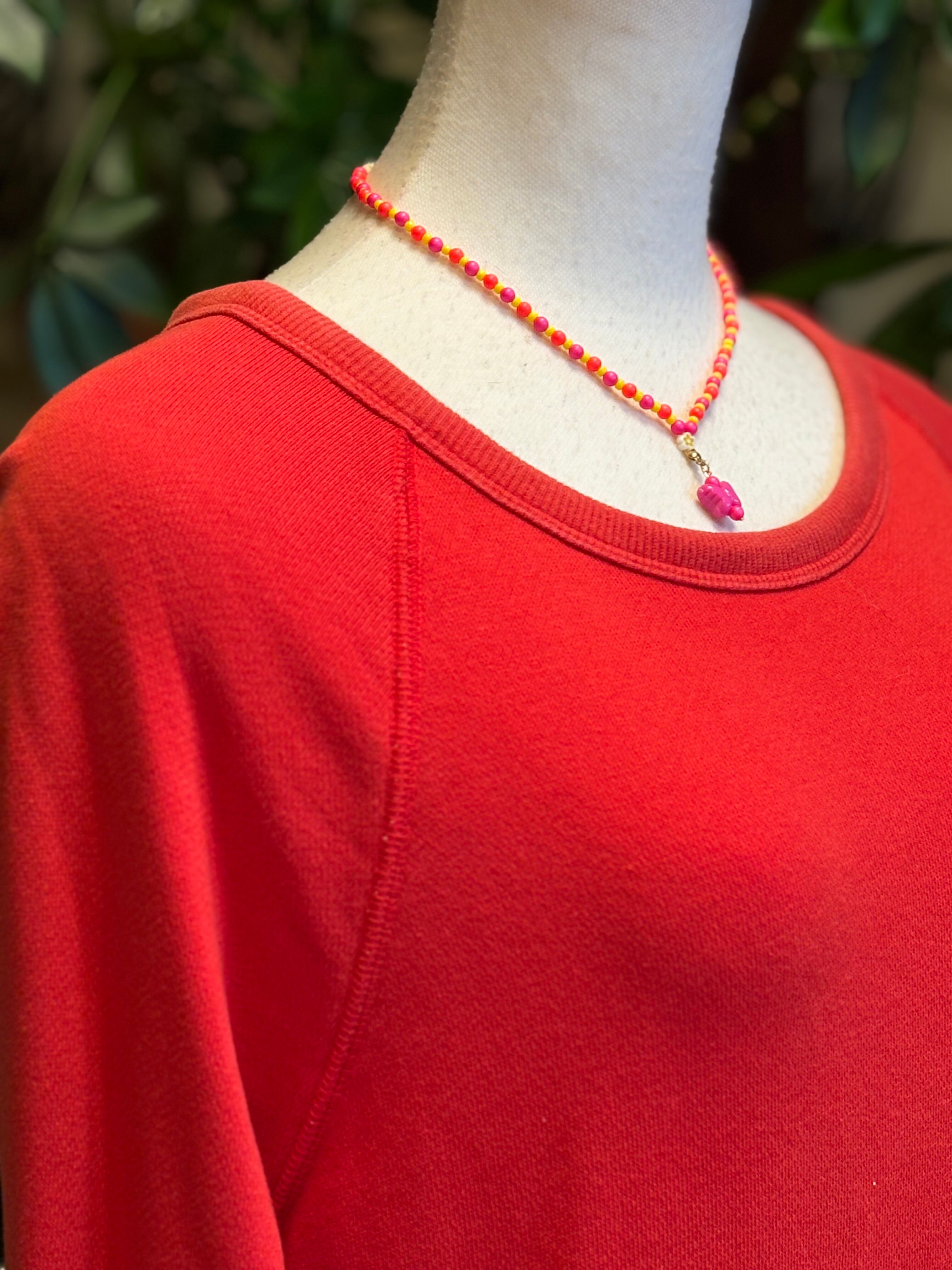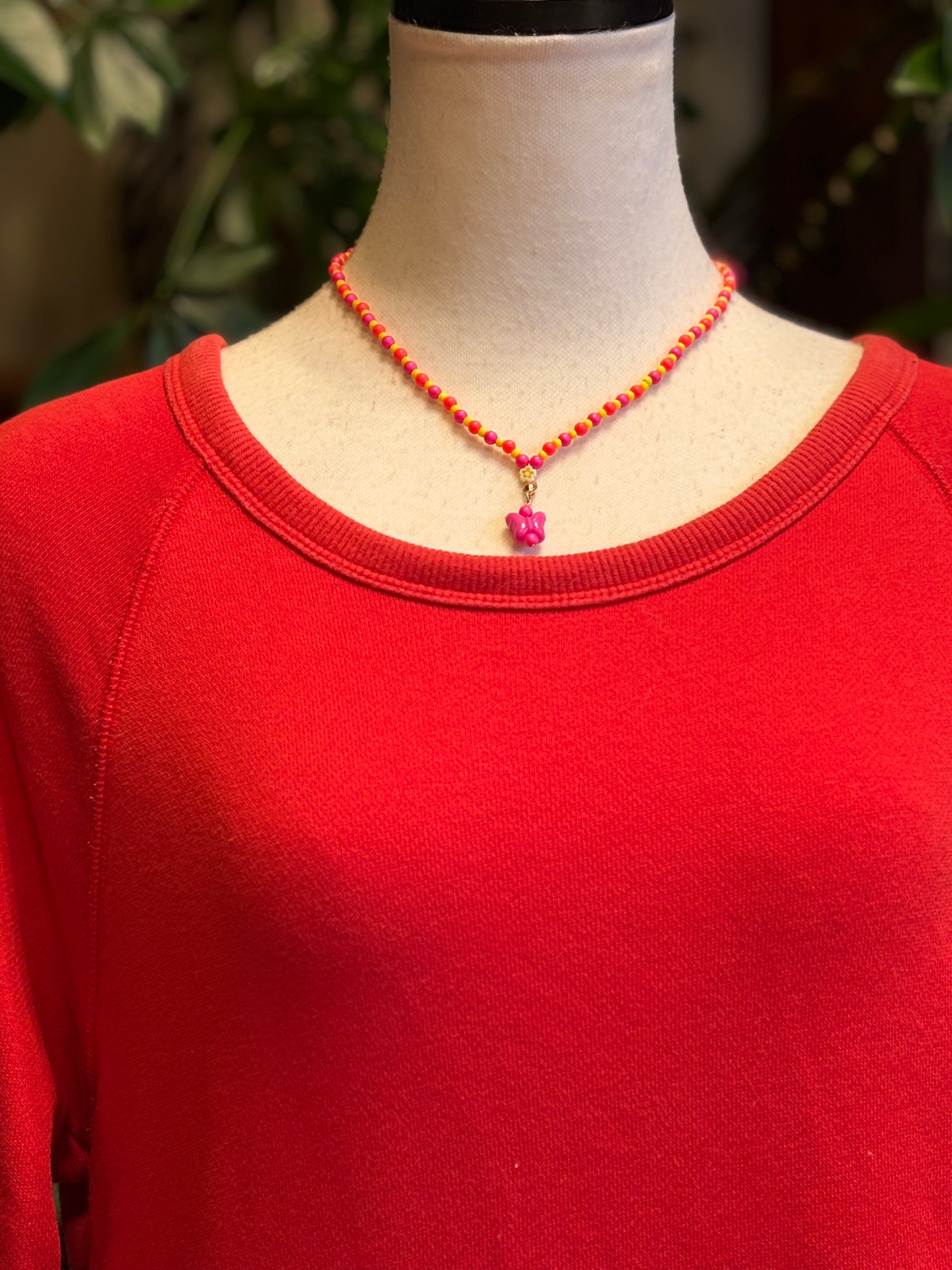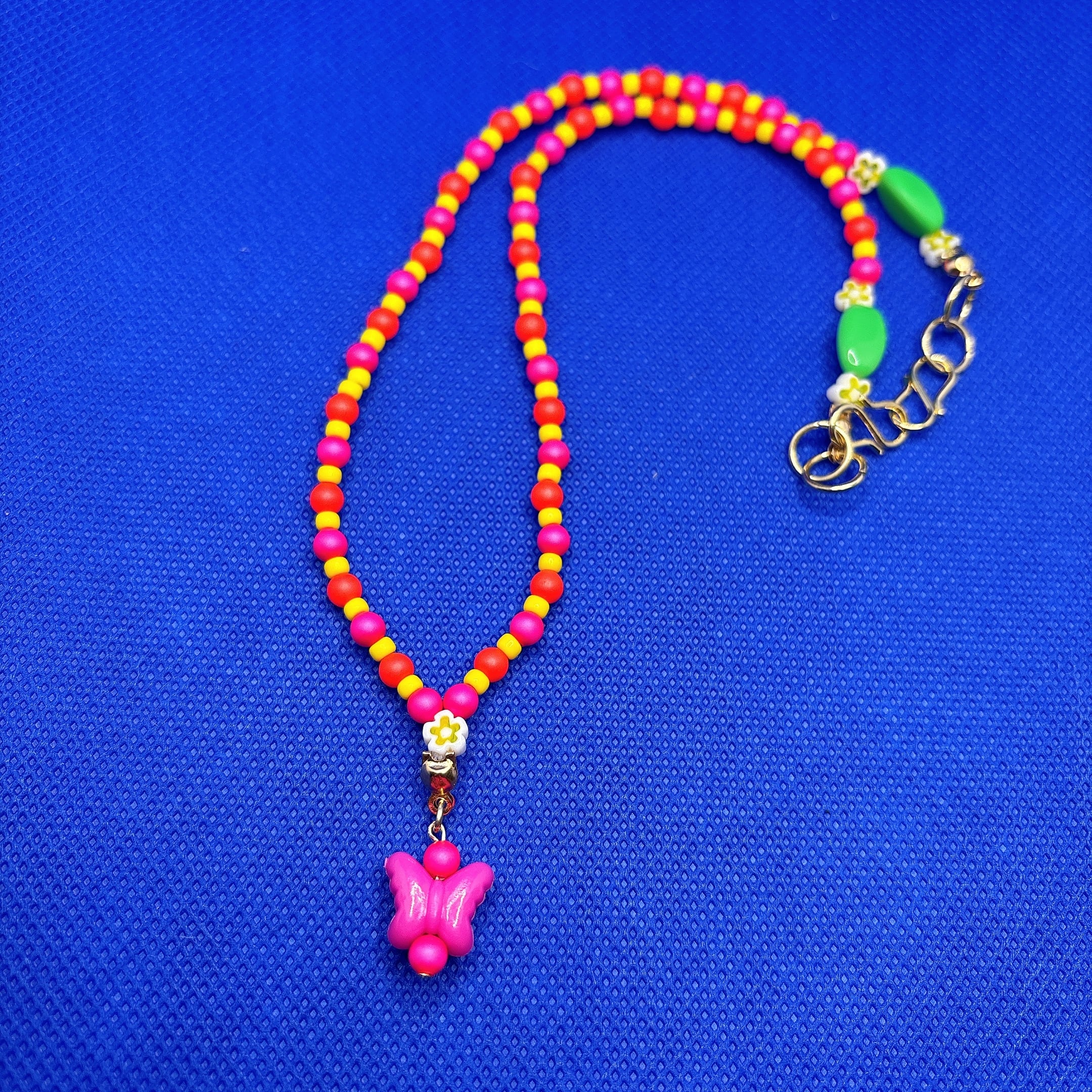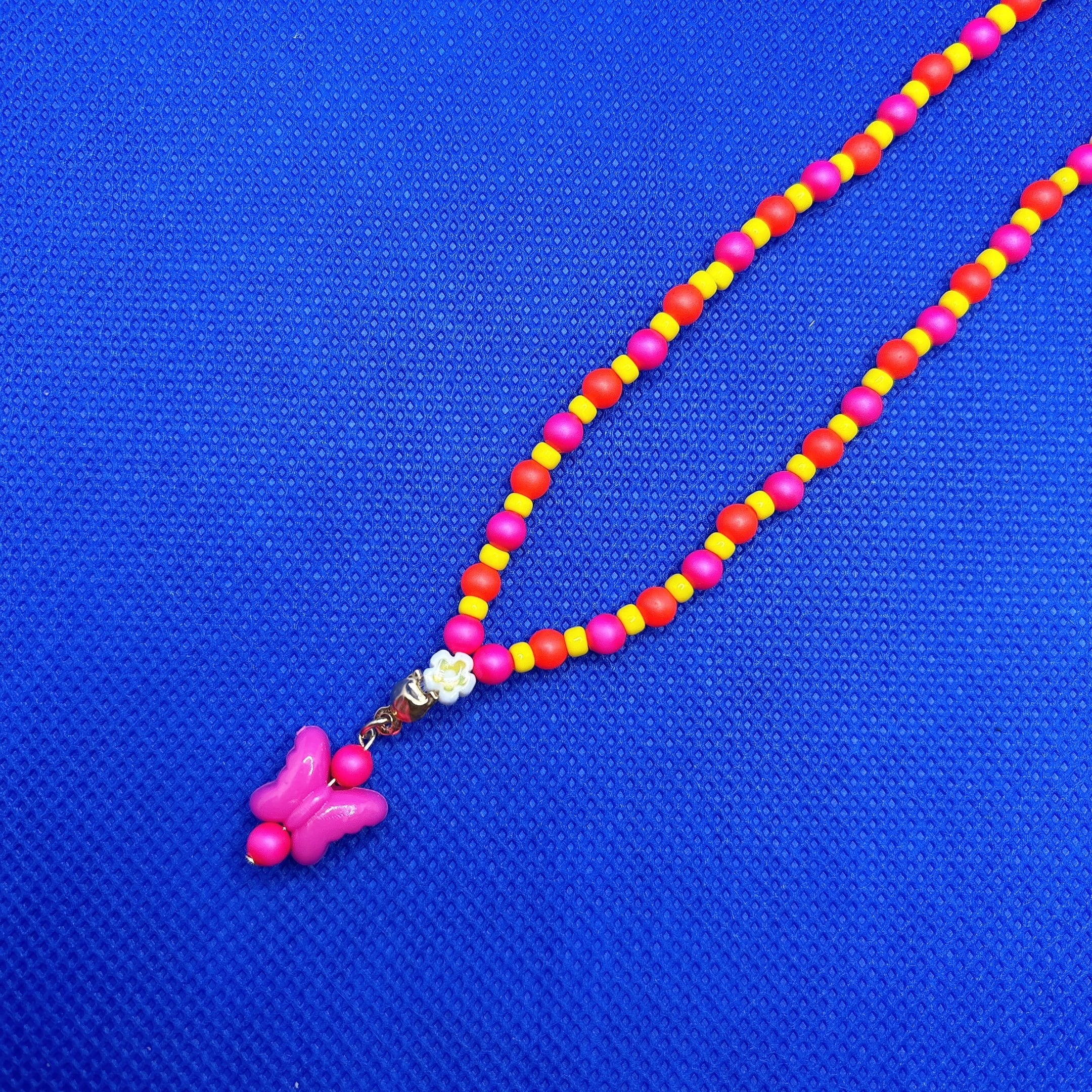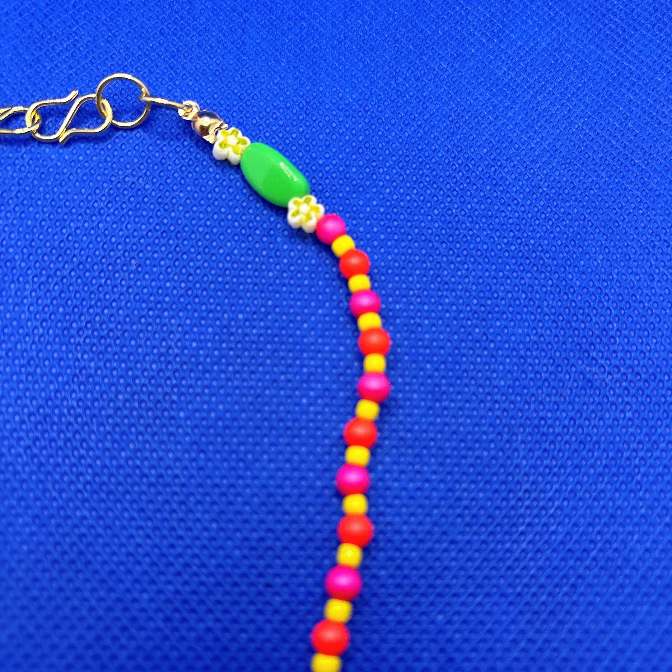 ◾️ ネオンピンク・オレンジ・イエローを組み合わせた、ポップで存在感のあるビーズネックレス。
