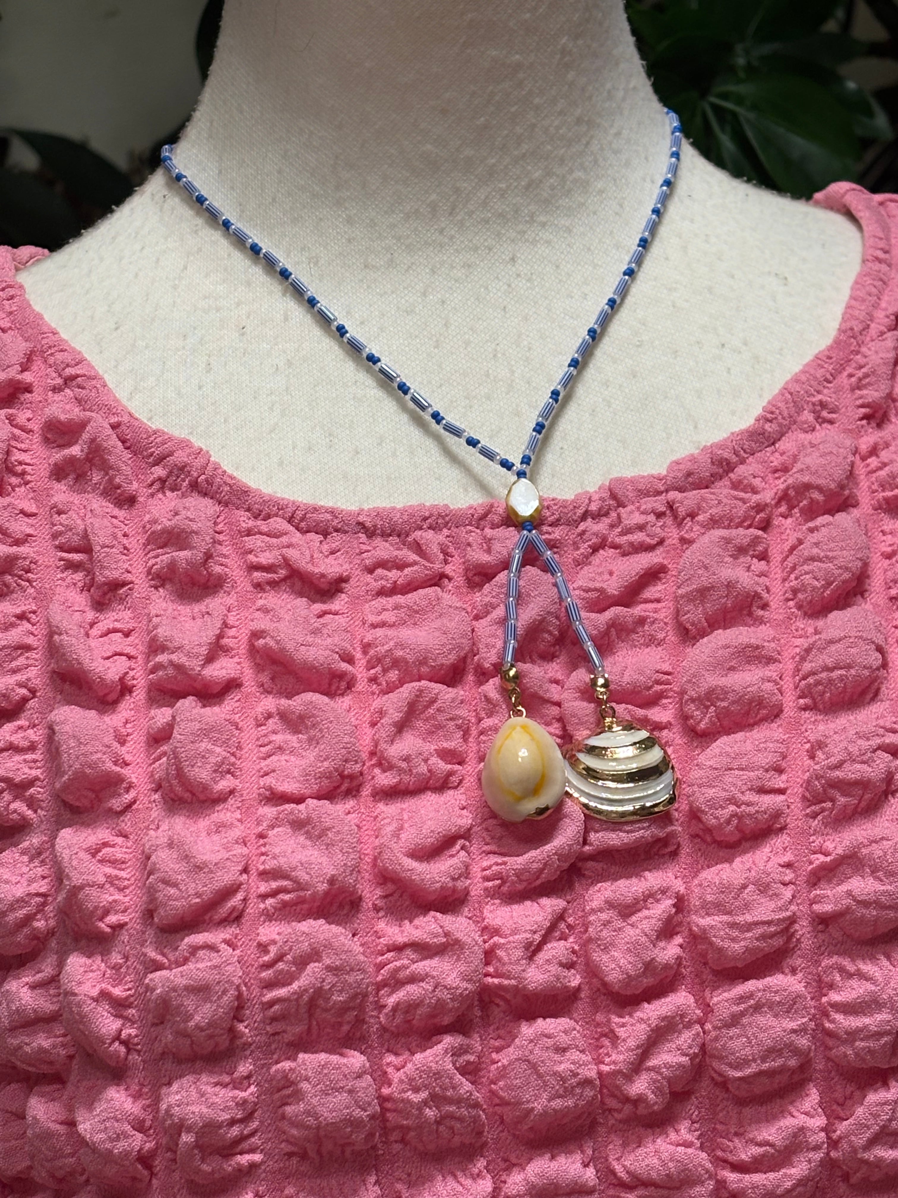 繊細なシードビーズと細長いチューブビーズの組み合わせが、首元をすっきりと見せてくれます。一点でコーディネートのアクセントになる、春夏にピッタリのネックレス。