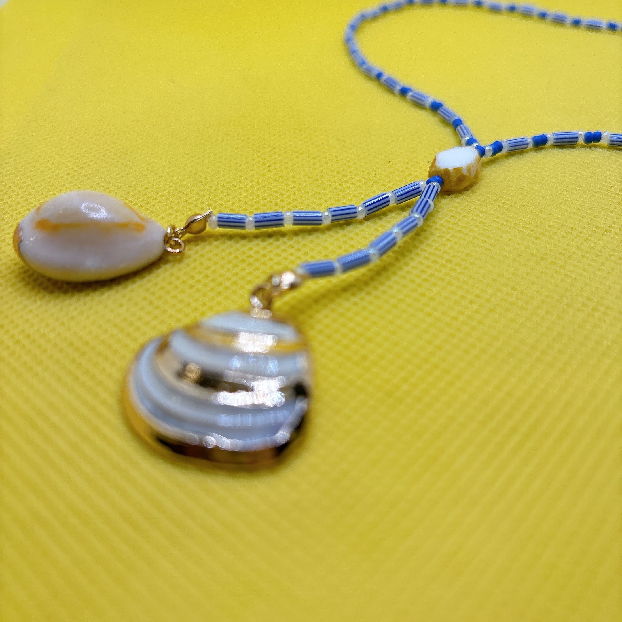 ホワイトシェル(白蝶貝)またはガラスビーズ