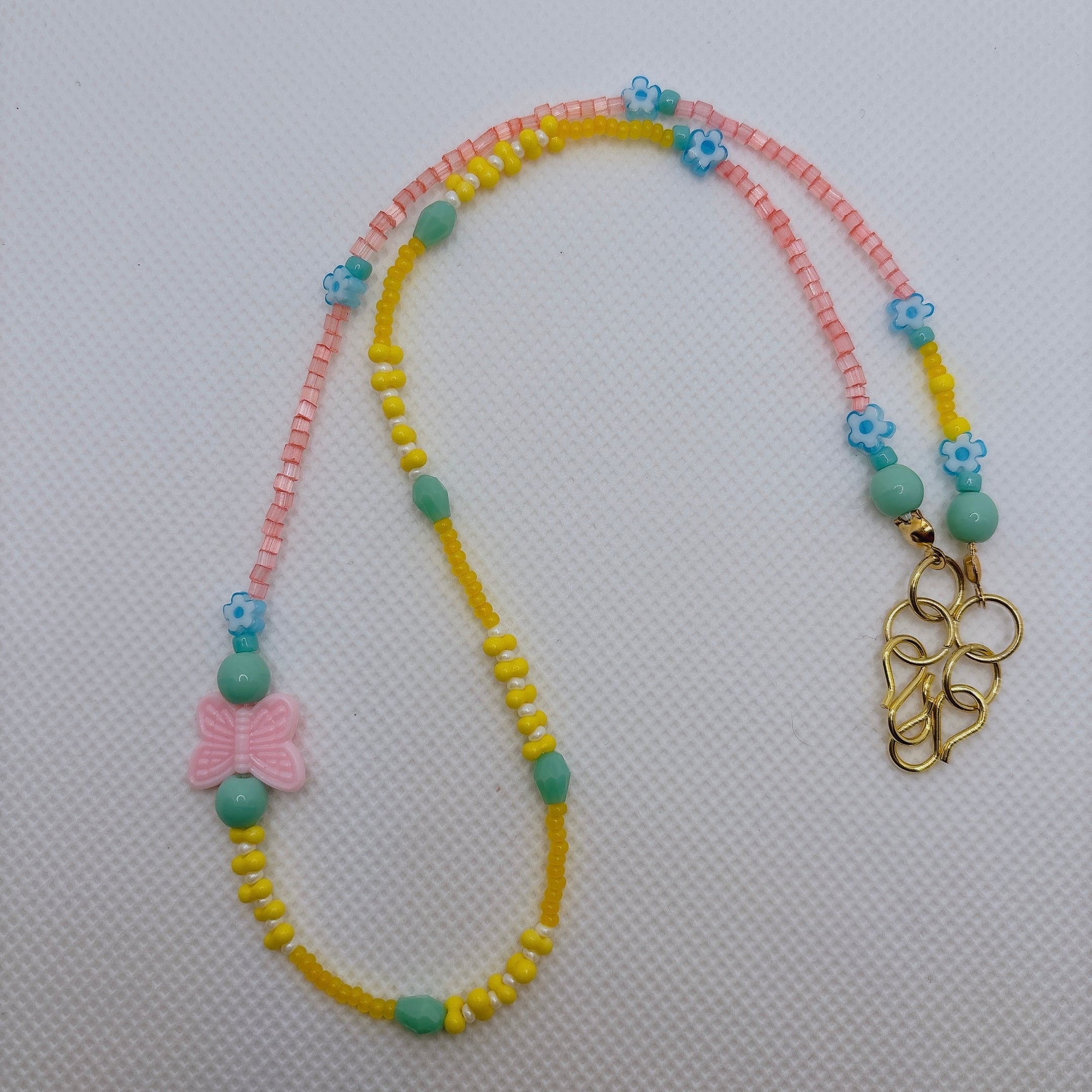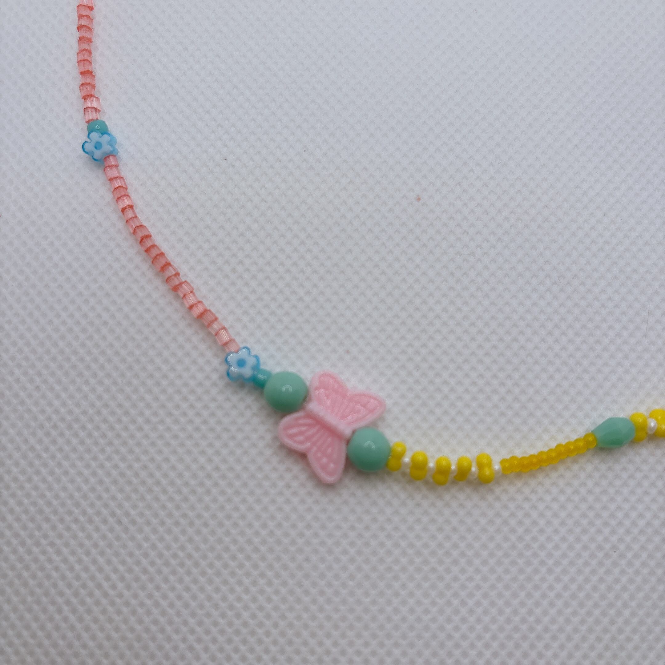 ◾️ パステルピンク・イエロー・ミントグリーンを基調にした、軽やかでポップなビーズネックレスです。