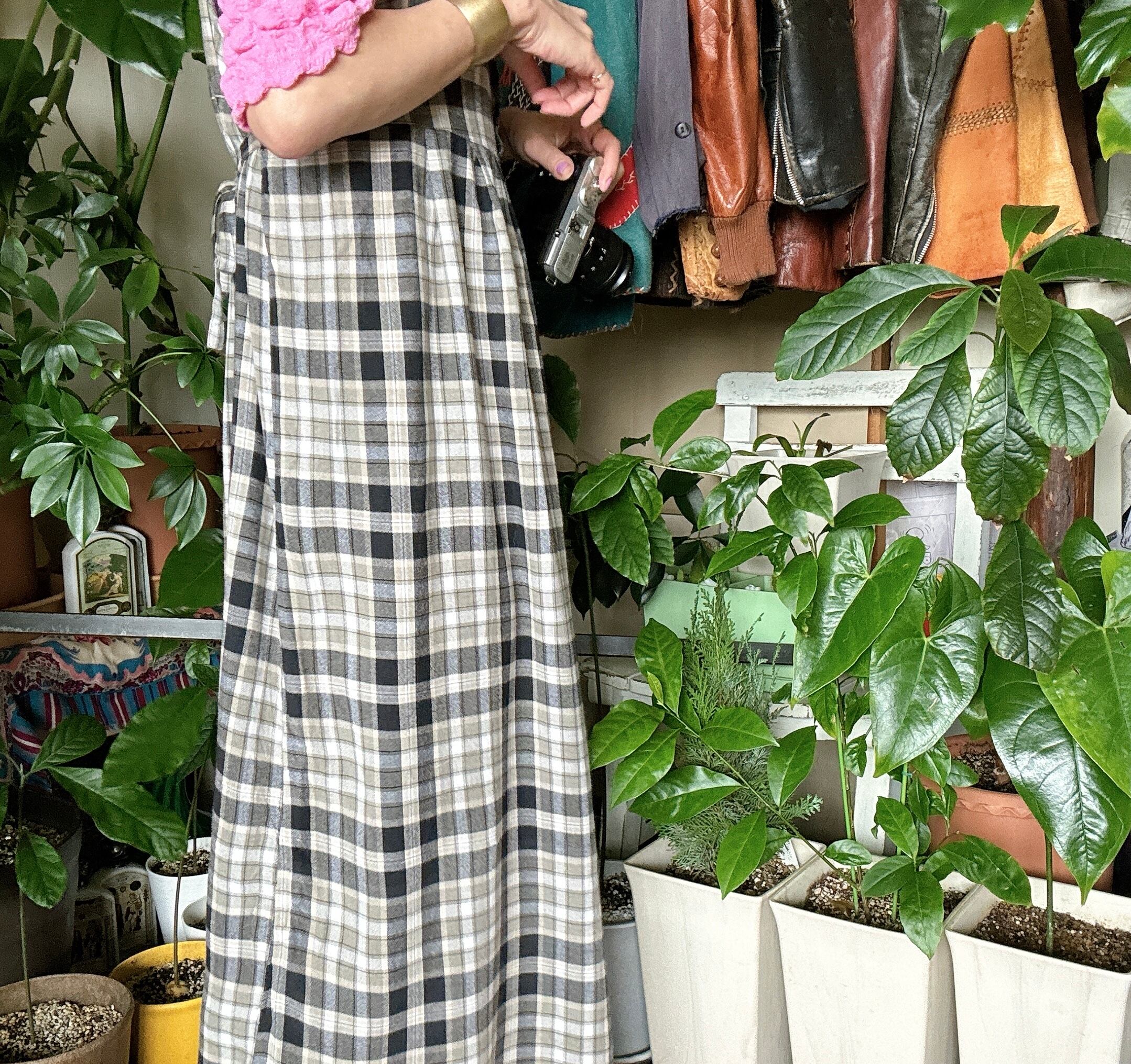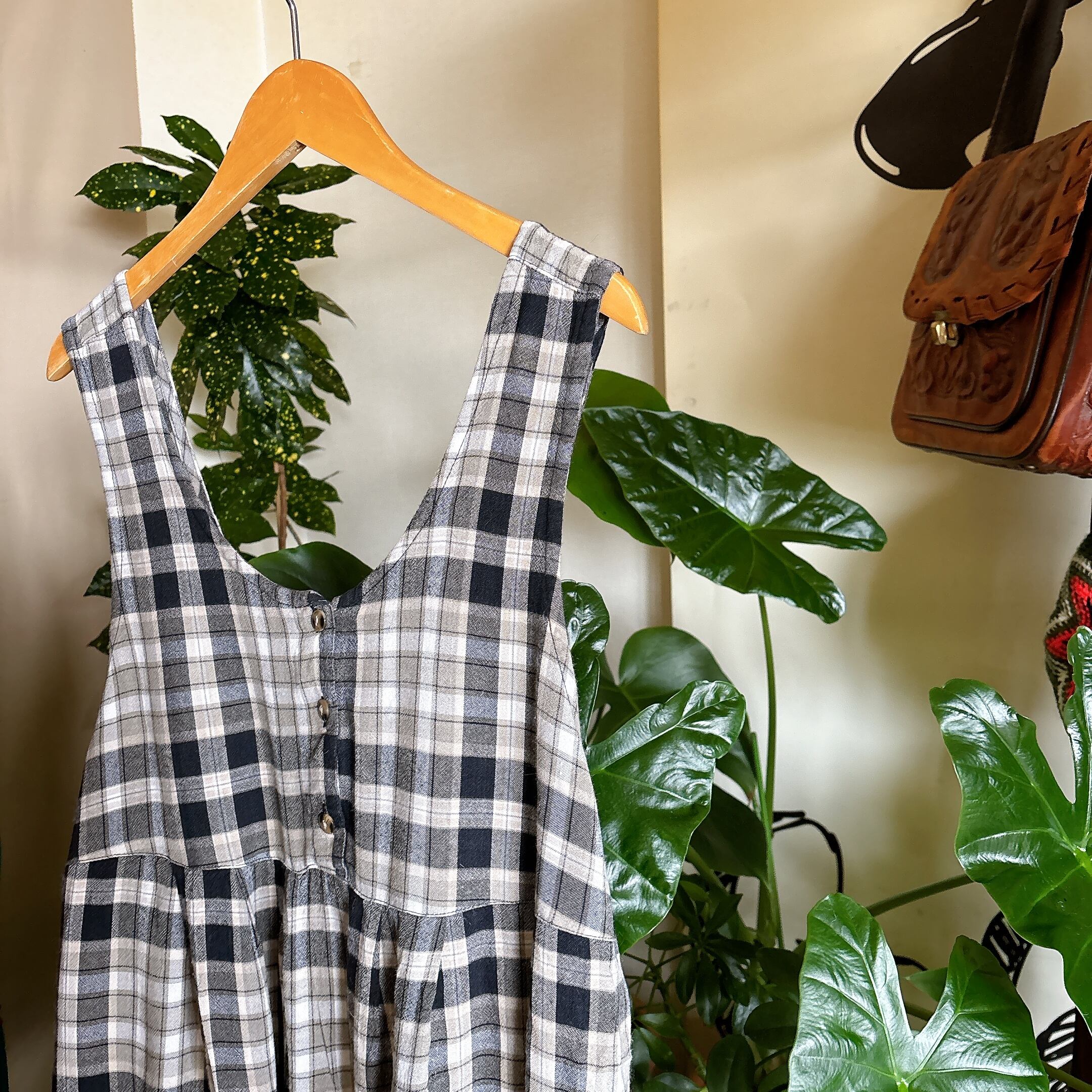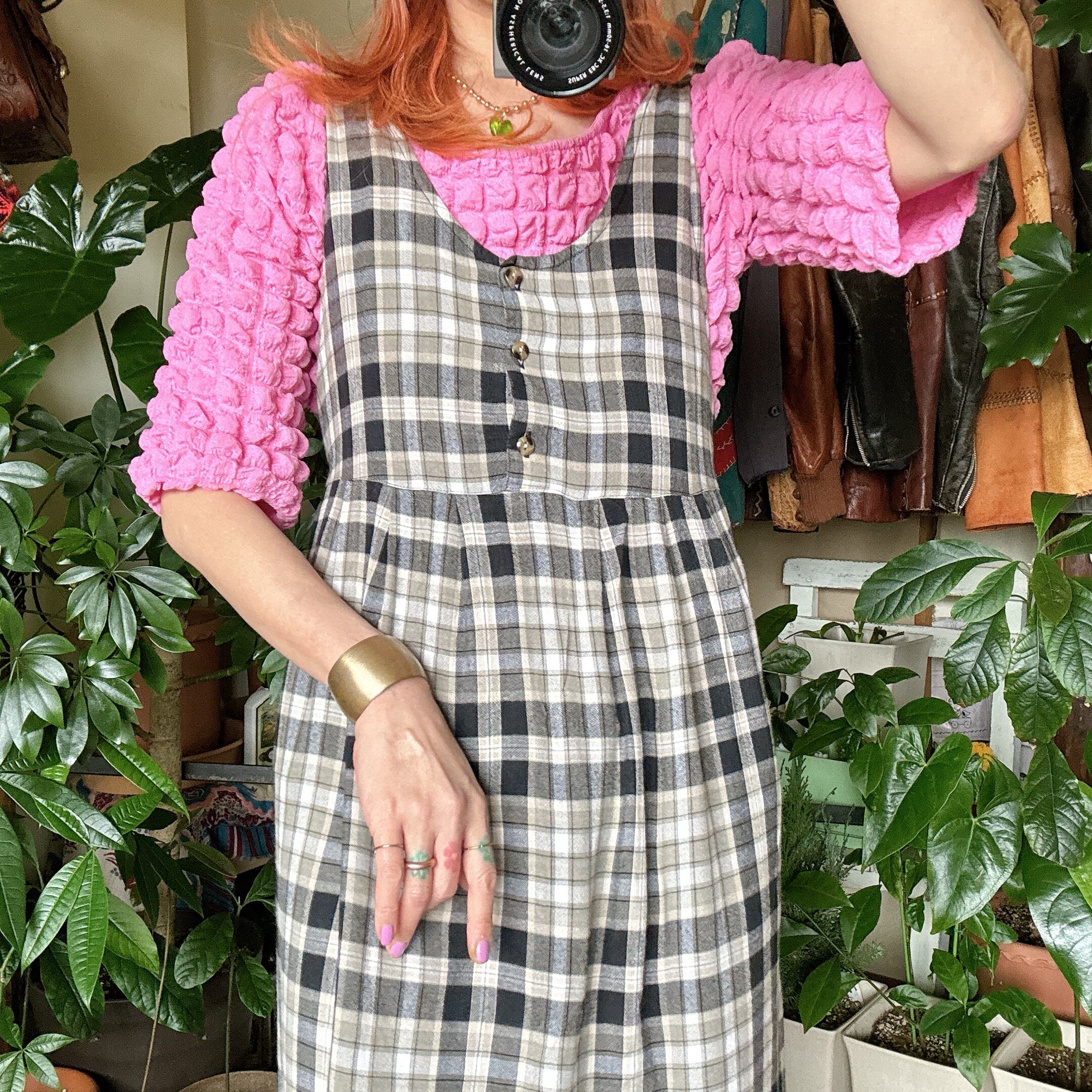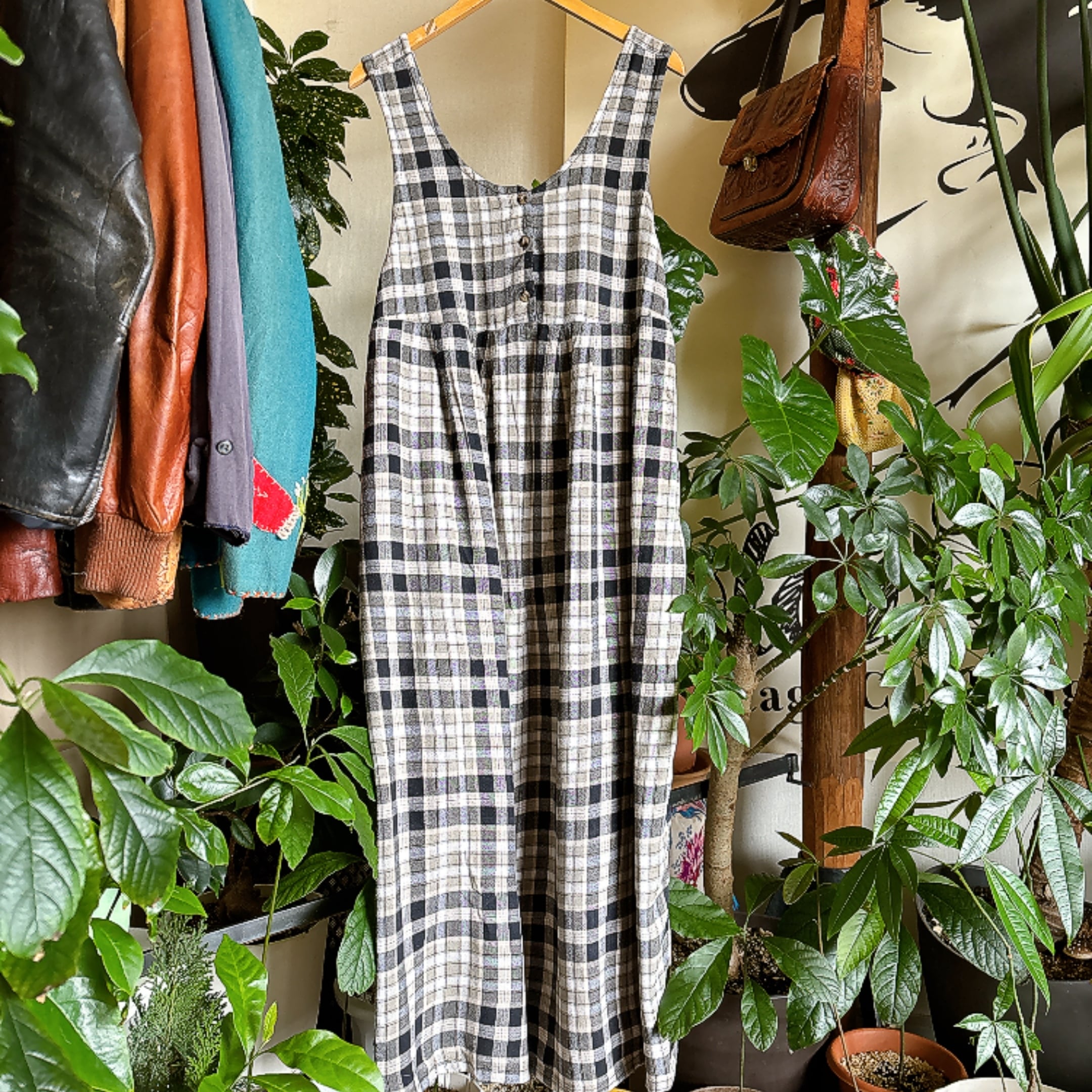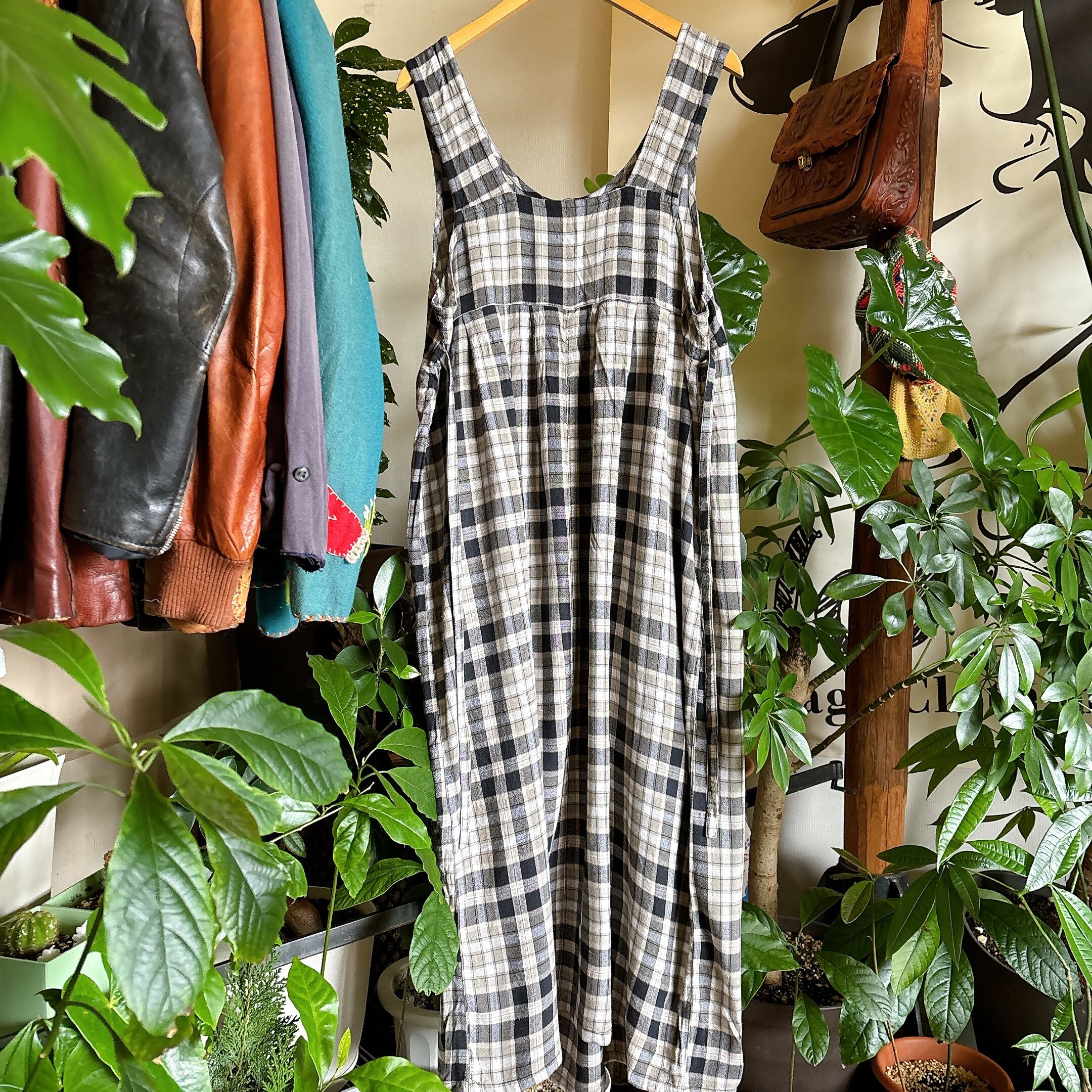 80s 90s コクーンチェック ノースリーブ ワンピース ドレス