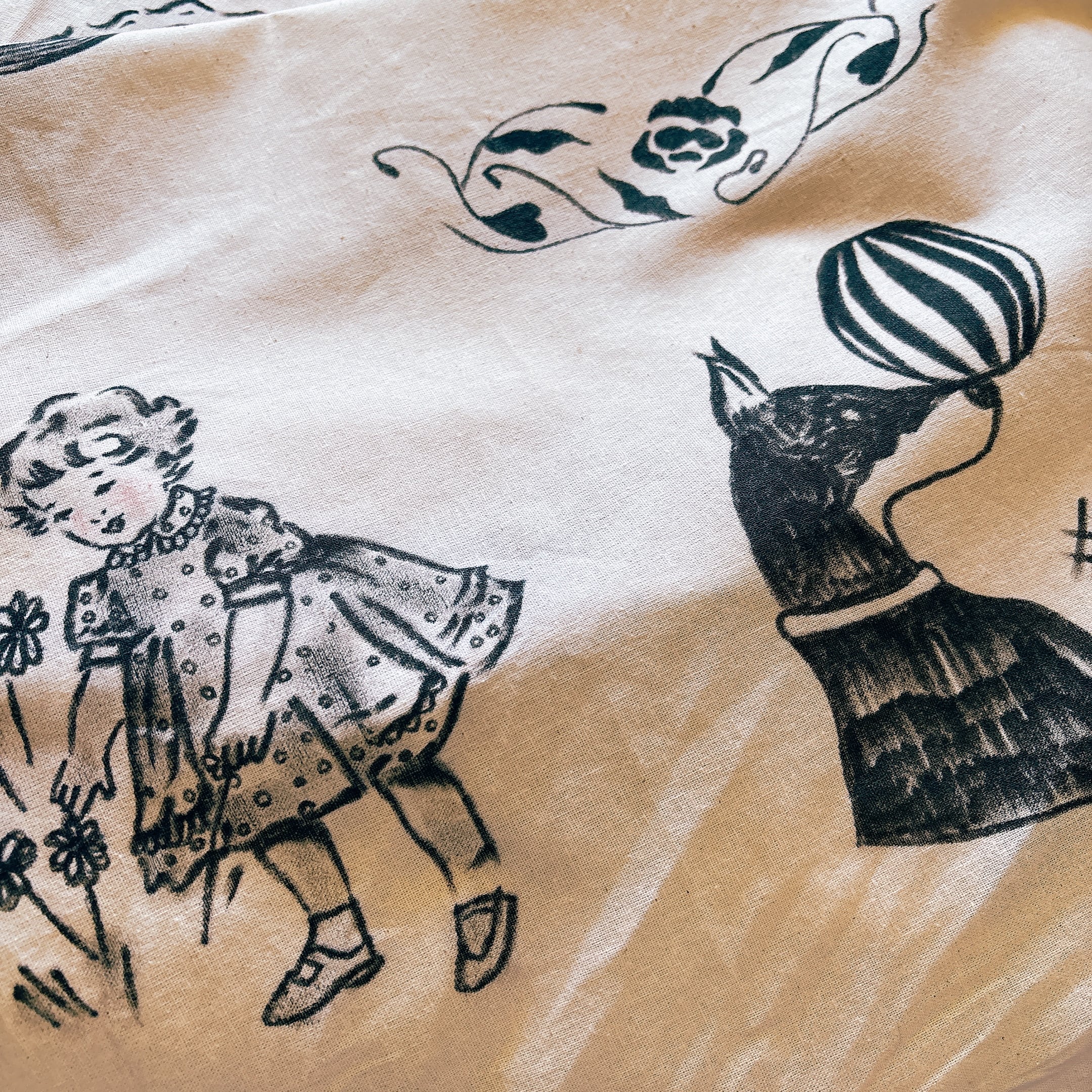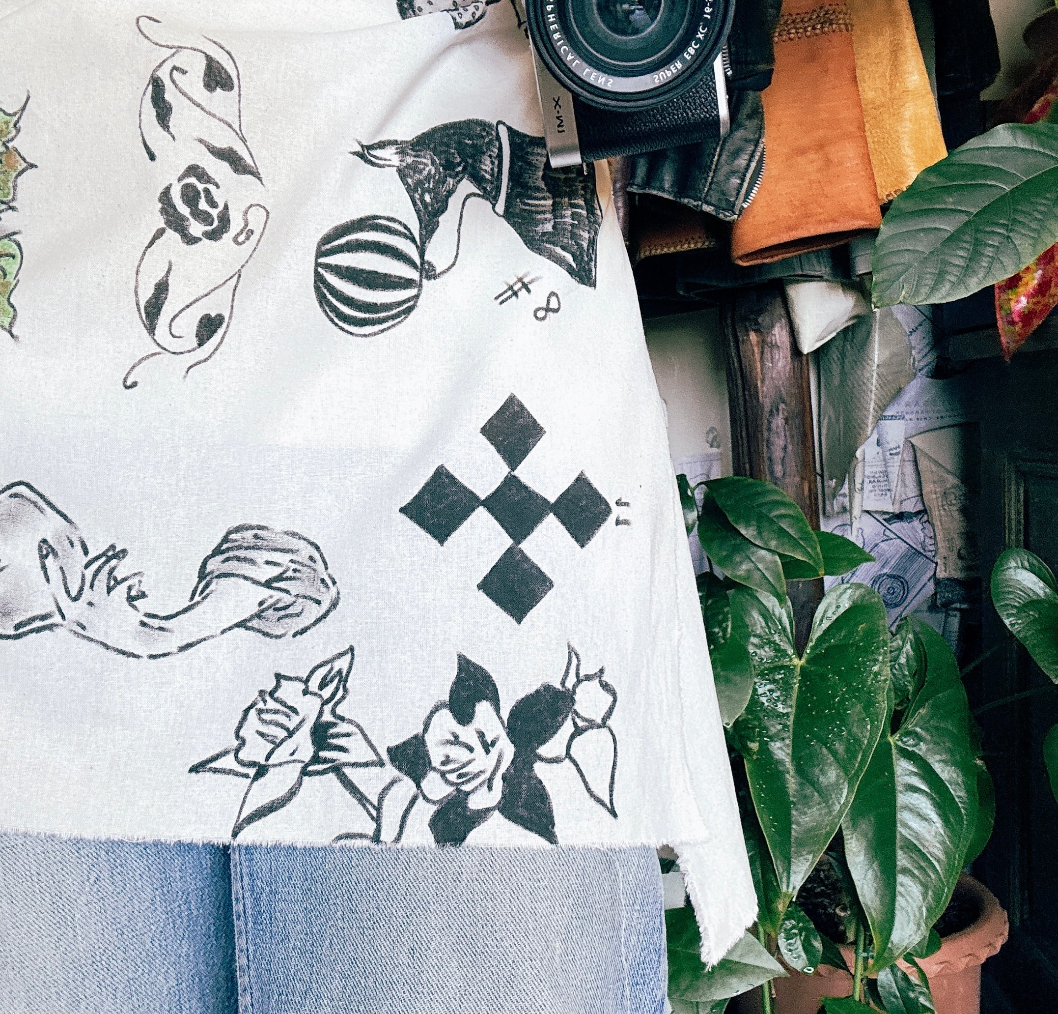 アップサイクルの理念をもとに、無地の布に一点ずつ手描きでペイントを施したファブリックです。
