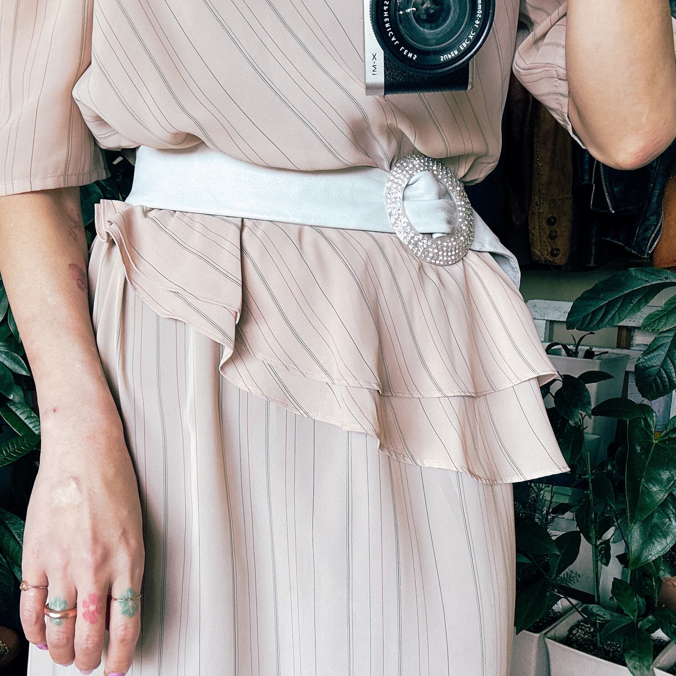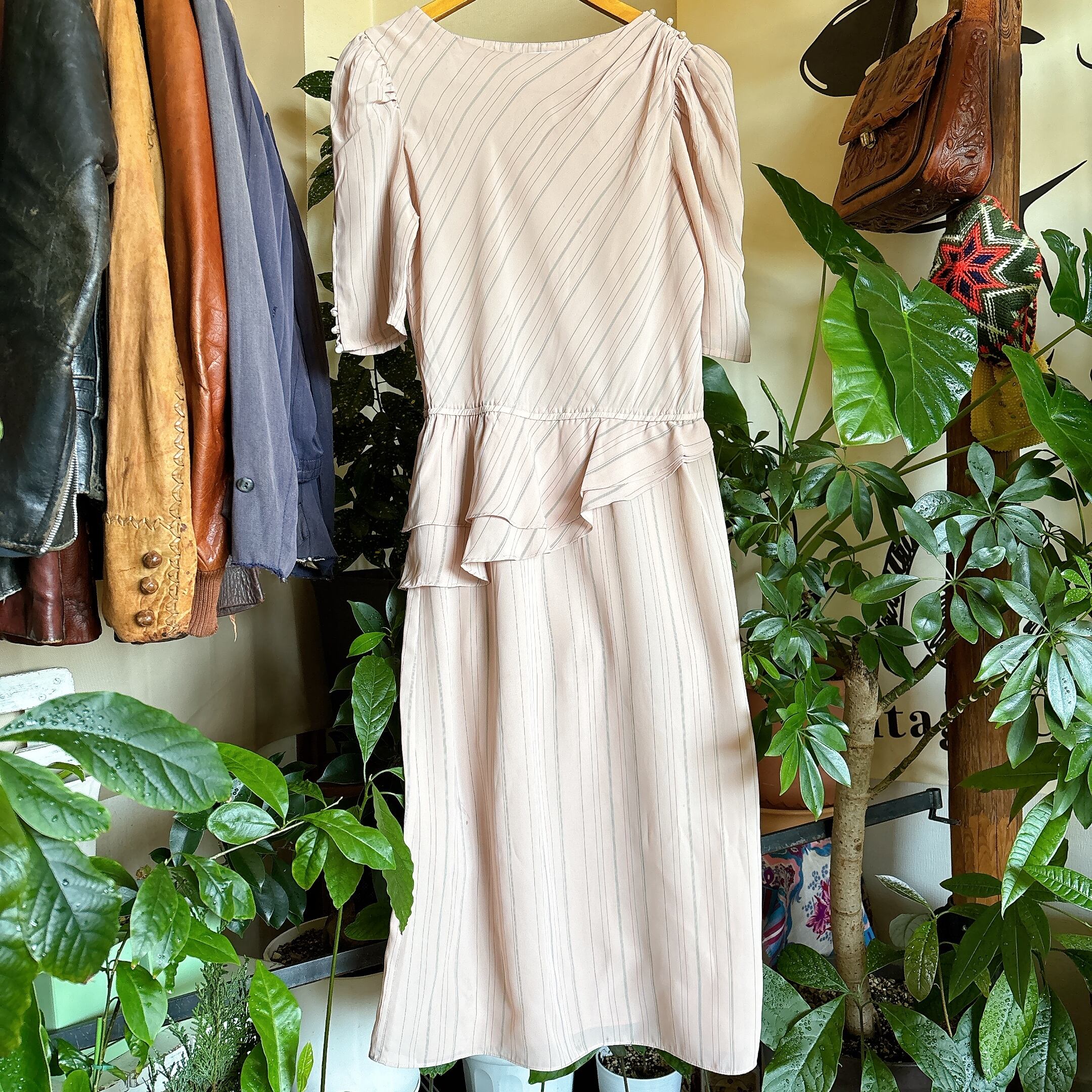 80s アシンメトリー ペプラム ブラッシュピンク プリーツ ドレス