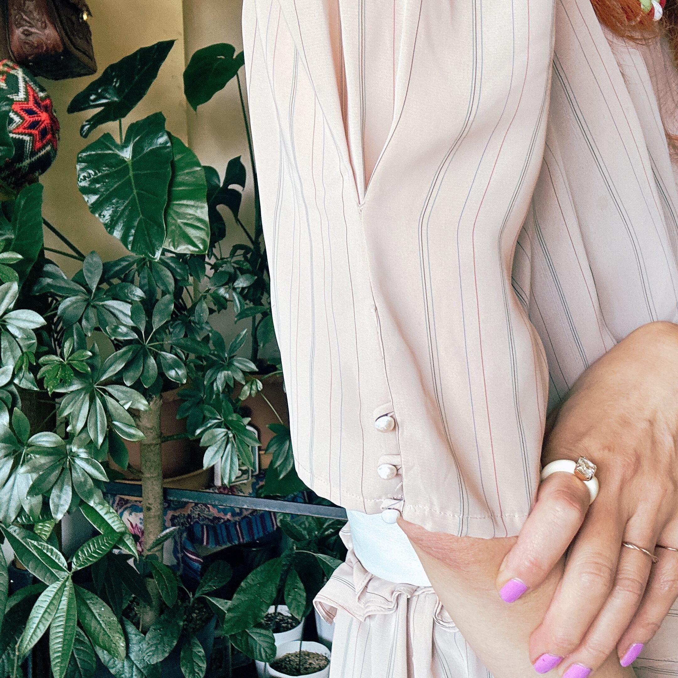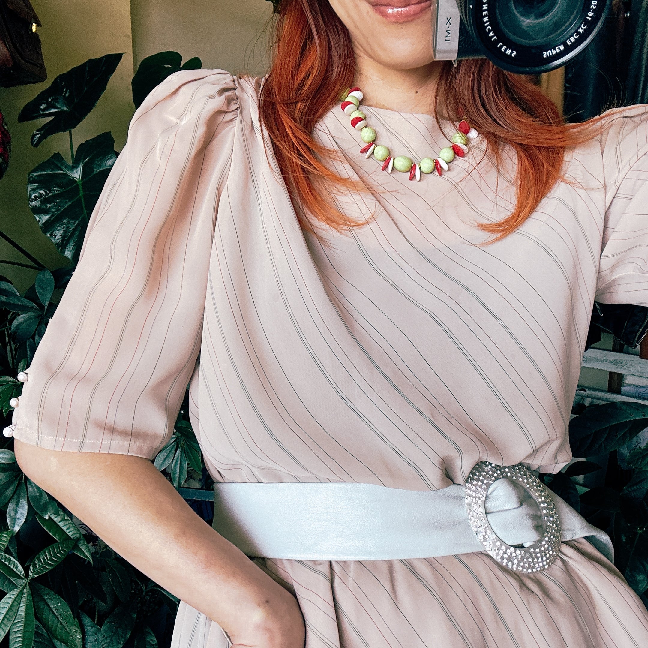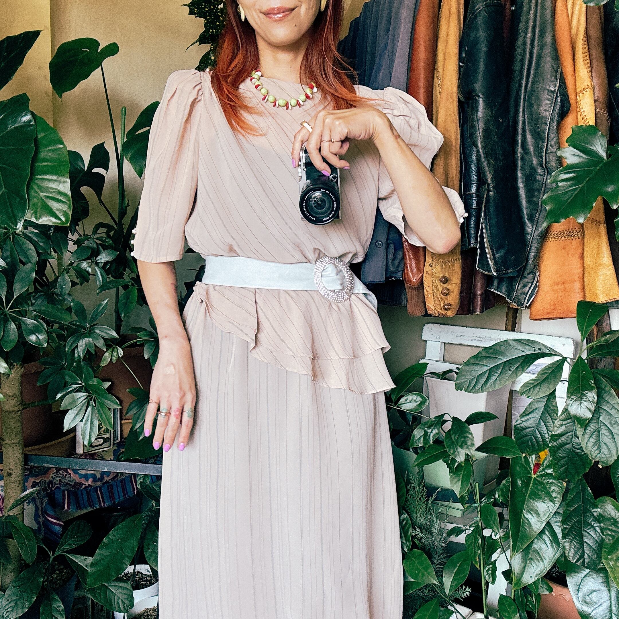 ◾️ 柔らかなブラッシュピンクが印象的な、1980年代頃のヴィンテージ・プリーツドレスです。