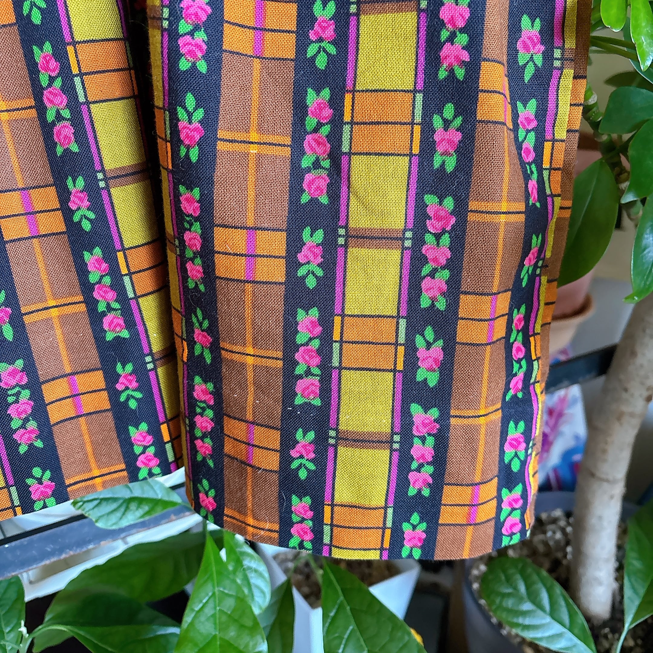 70s フラワー ストライプ チェック パッチワーク風 花柄 エプロン ドレス ワンピース