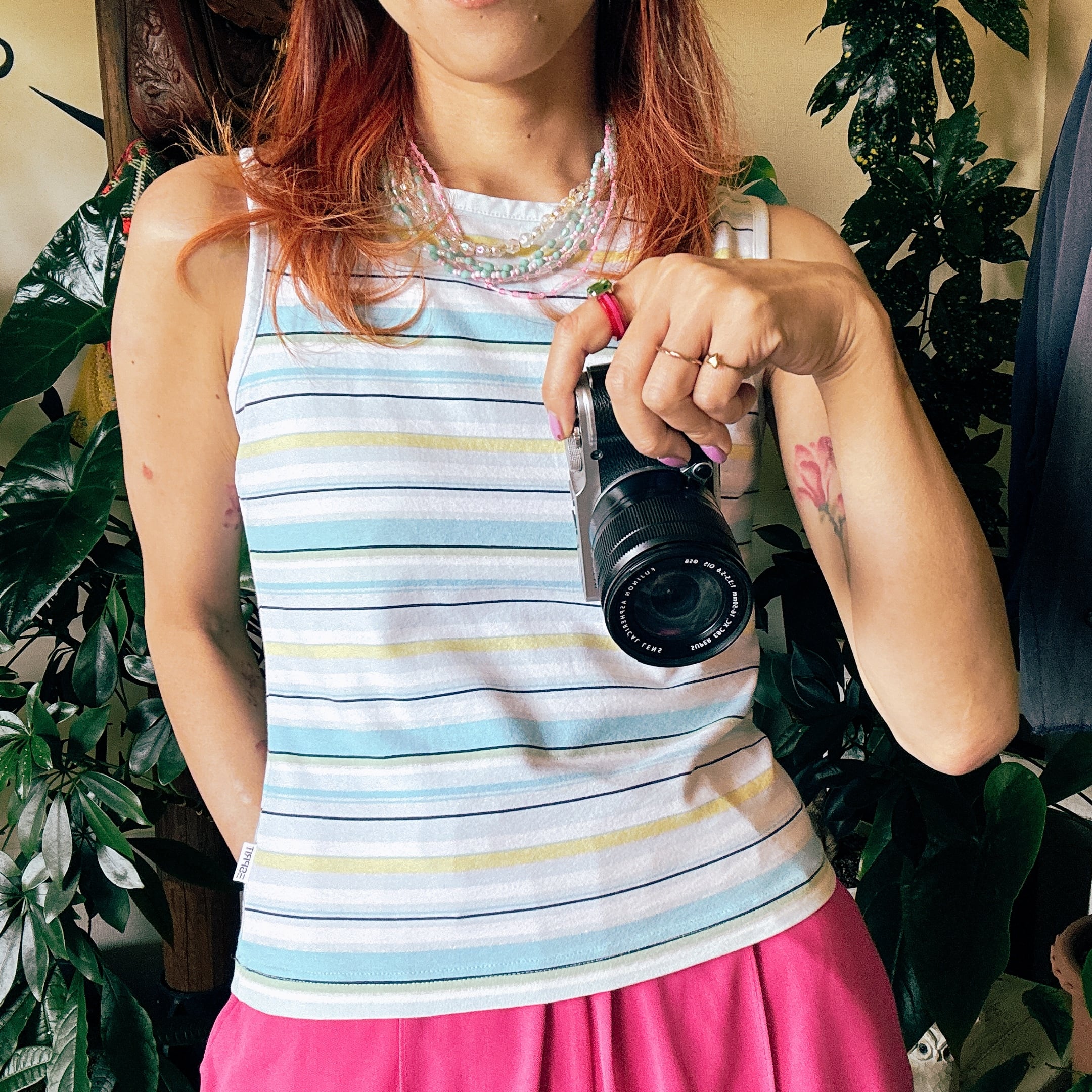 ▪️伸縮性抜群です☺︎タイトに見えますが着心地の良さ、肌触りの良さはさすがコットン100%。ユーロヴィンテージならではのディテール迄拘りのある1枚です。カジュアル過ぎないタンクトップ。お色味の雰囲気の良さもコチラをセレクトしてきた理由の1つ☺︎。なんとも涼やかで柔らかな印象のカラーリングは真夏に着ていて心地良いですよ☺︎