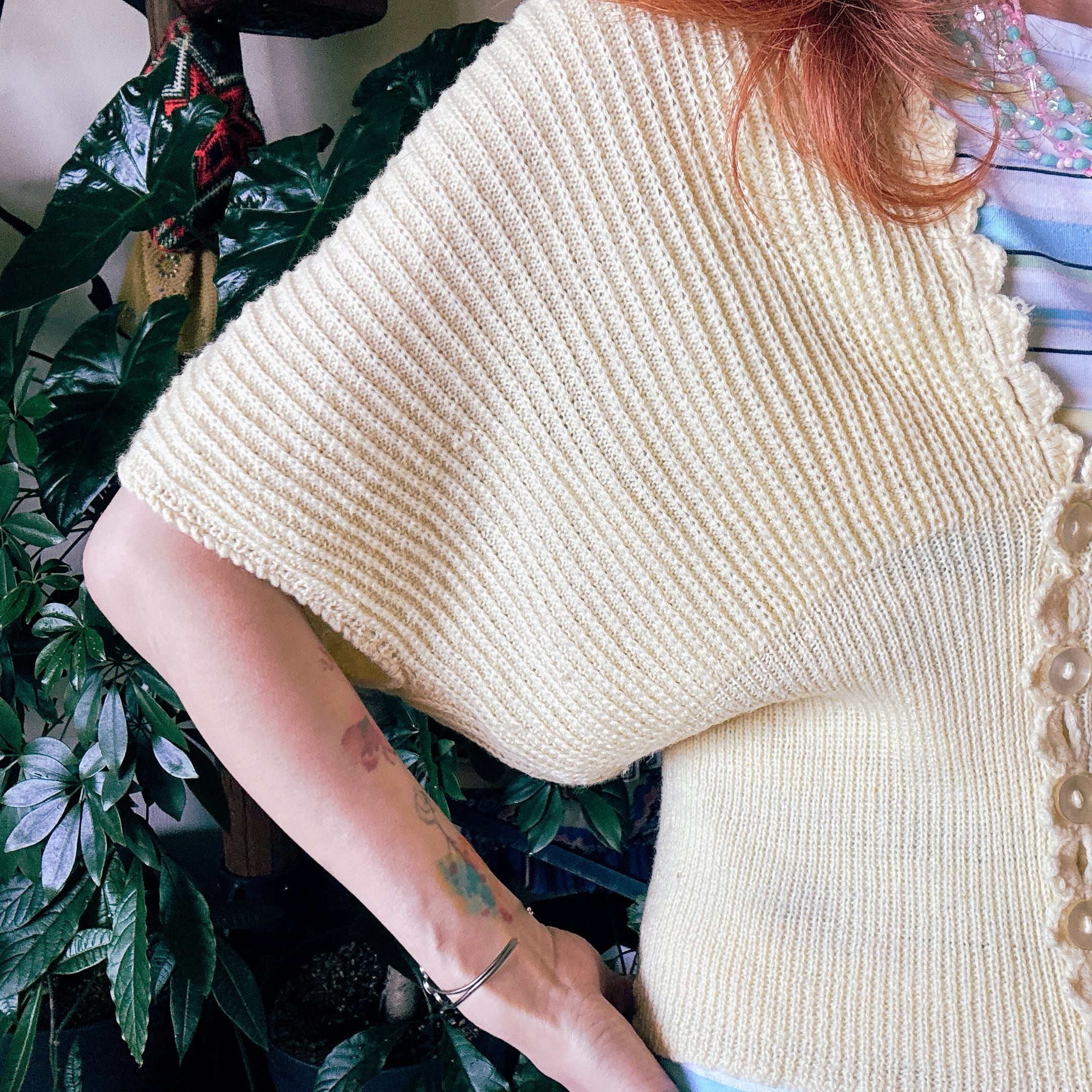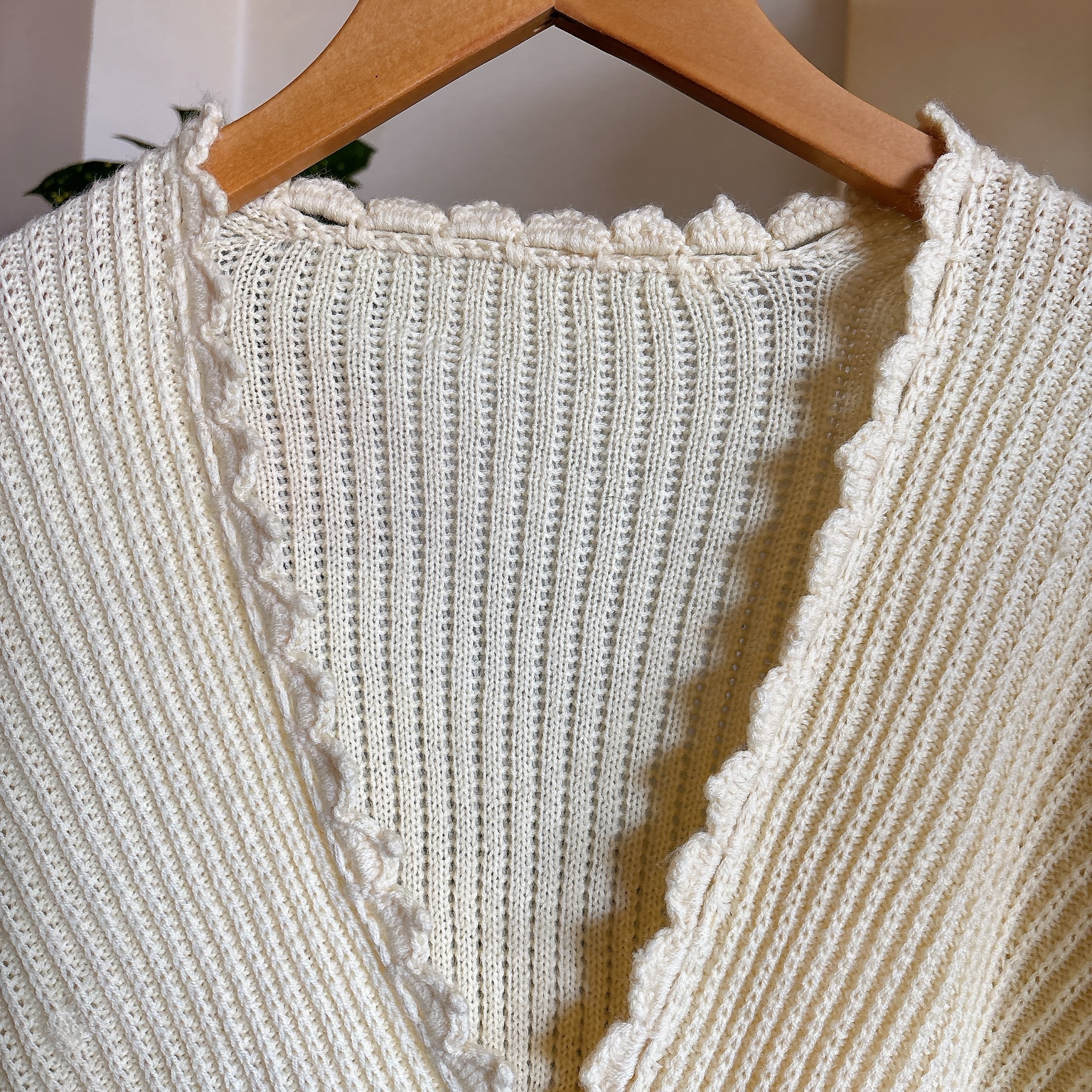80s 90s スカラップ トリム 半袖 ニット カーディガン