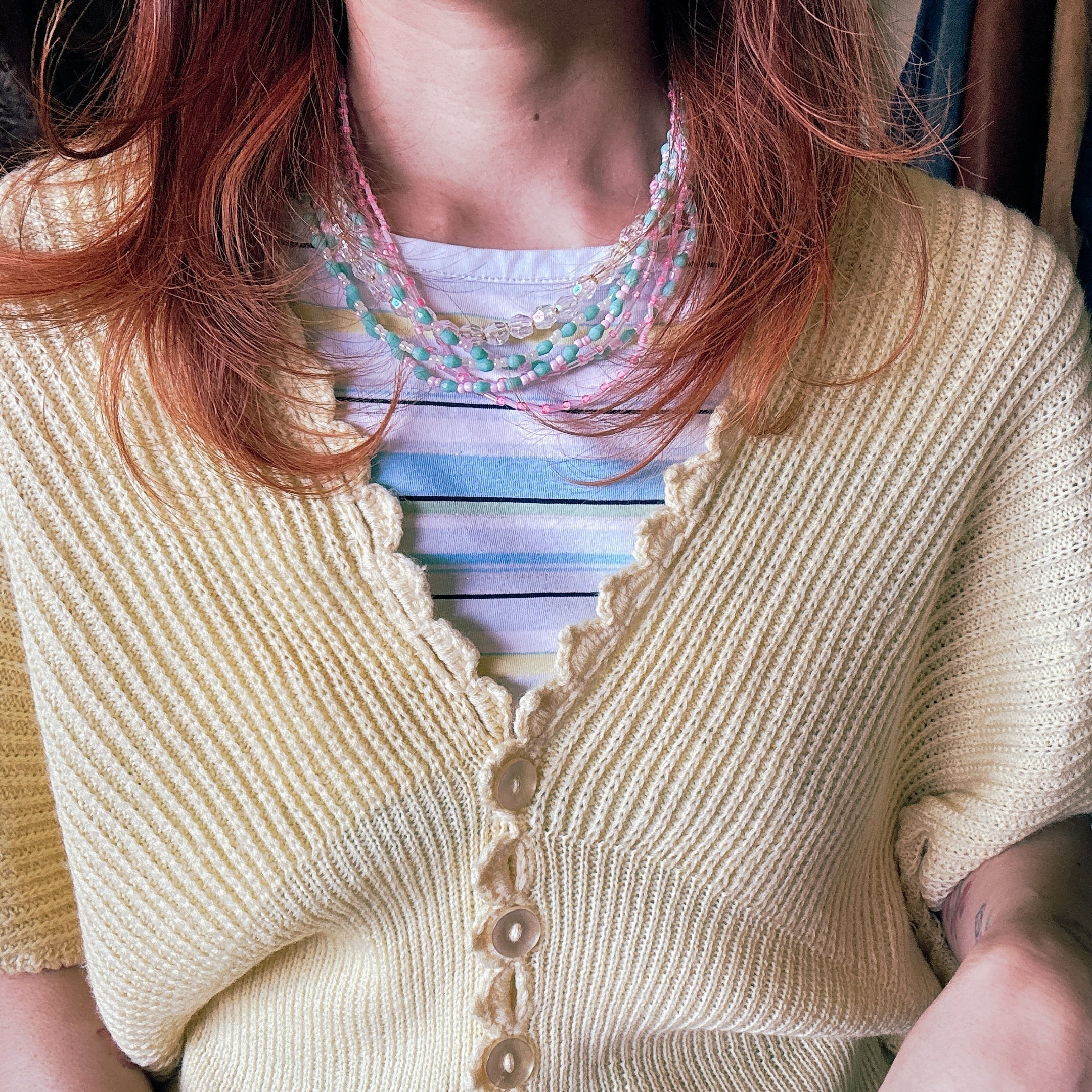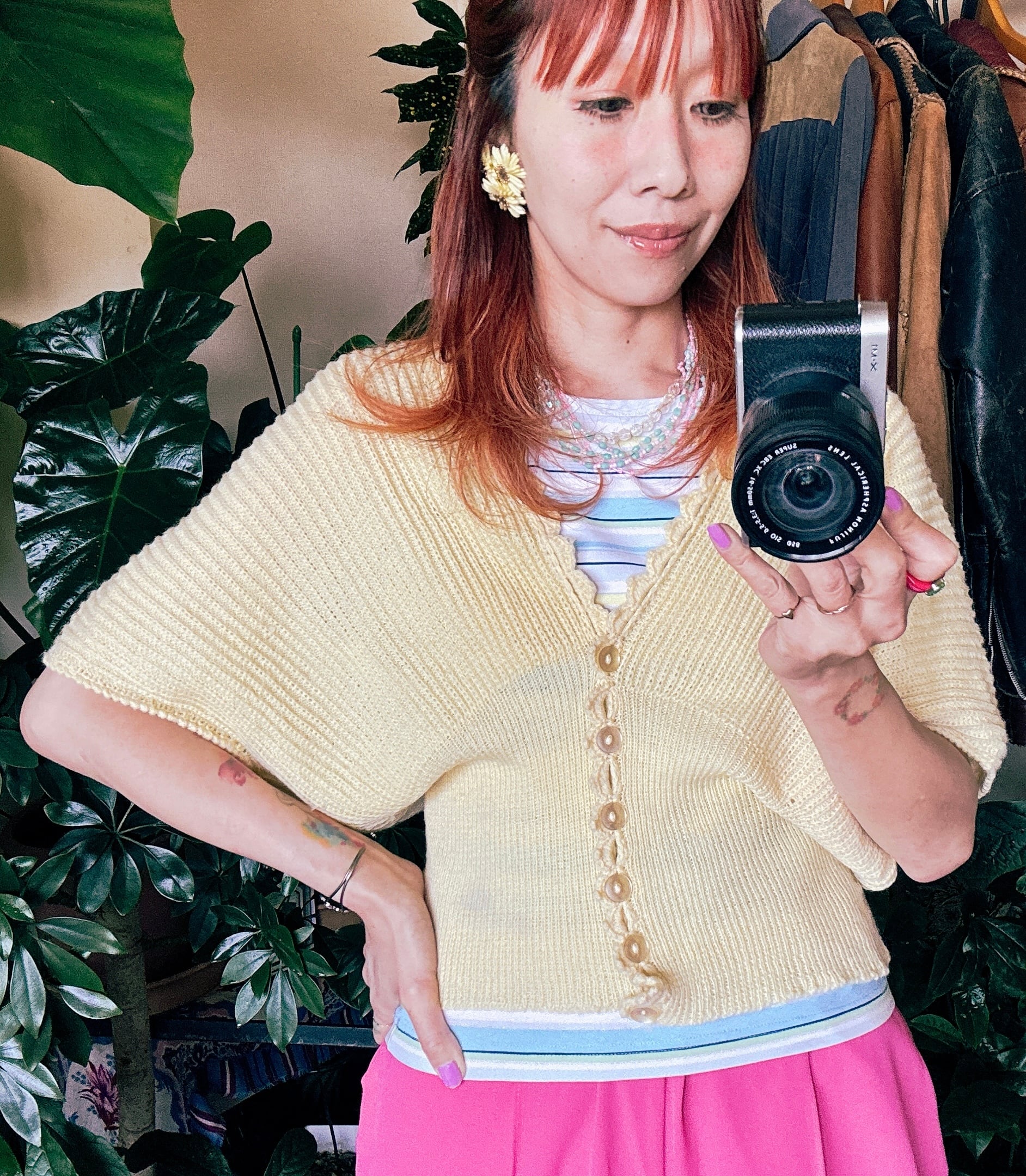 ◾️やさしいレモンイエローが魅力のヴィンテージニットカーディガン。