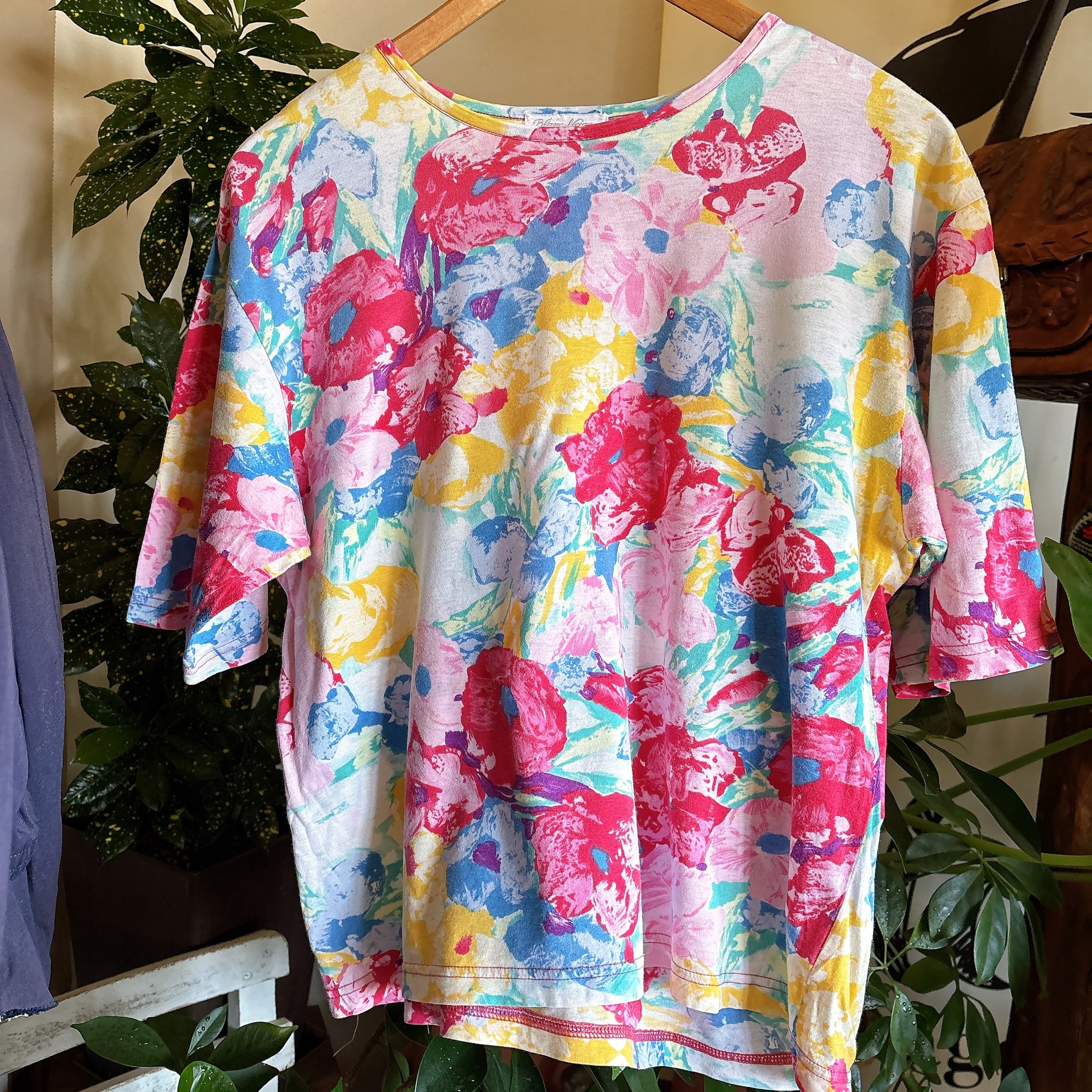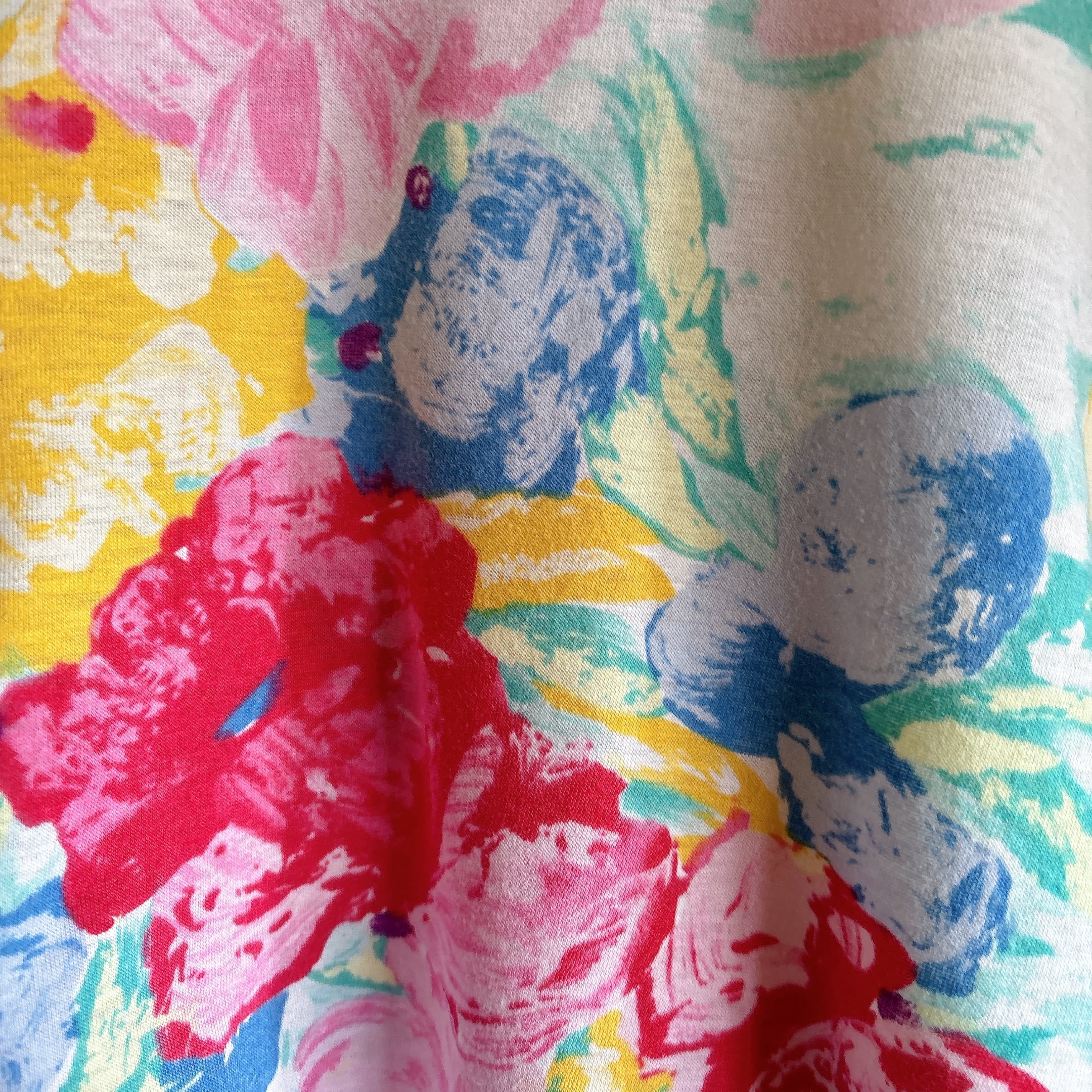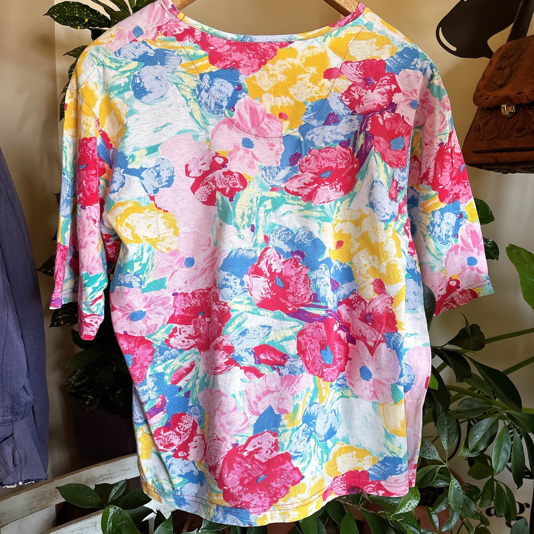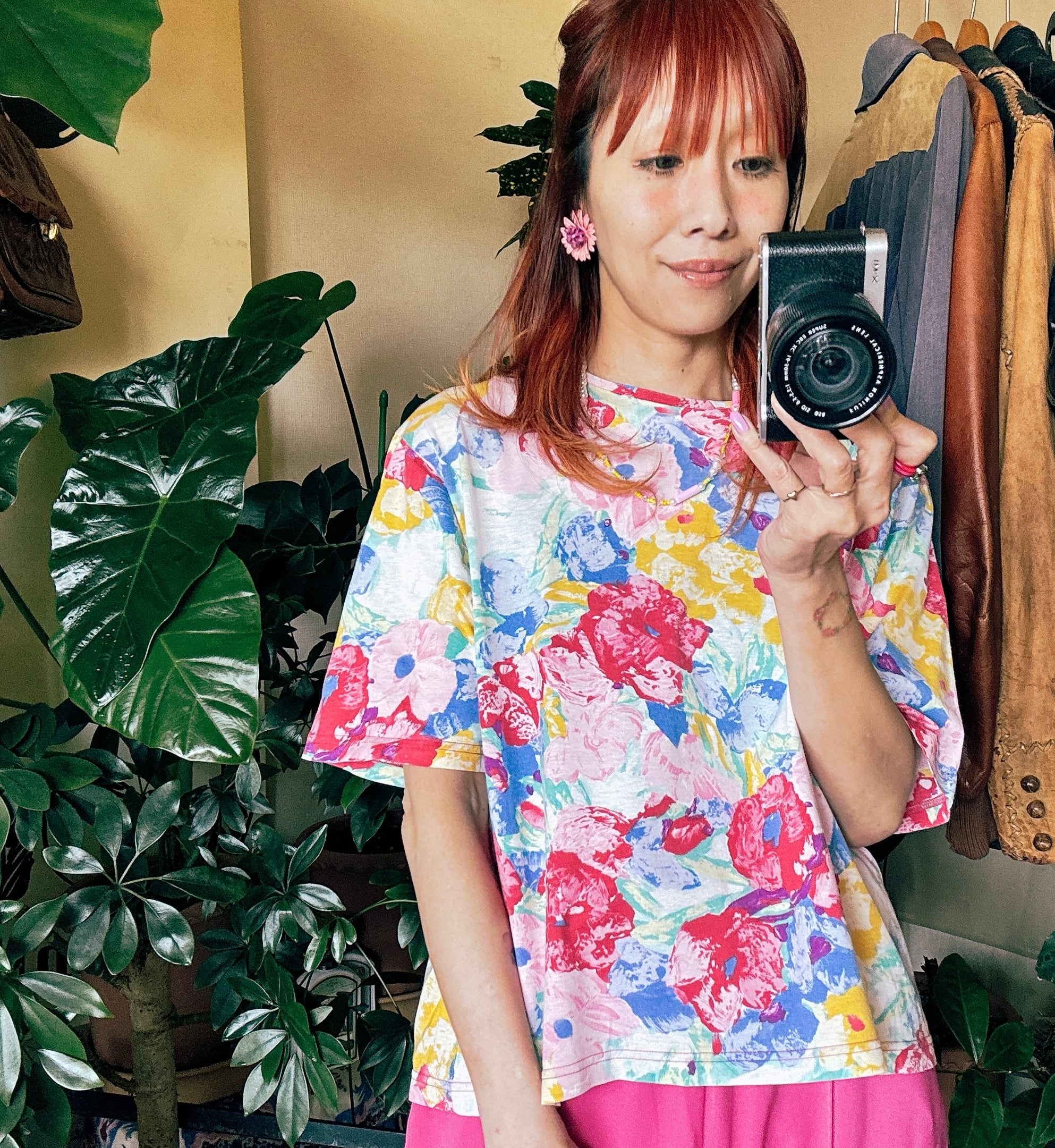 ◾️ 華やかなマルチカラーのフラワープリントが印象的なヴィンテージトップス。