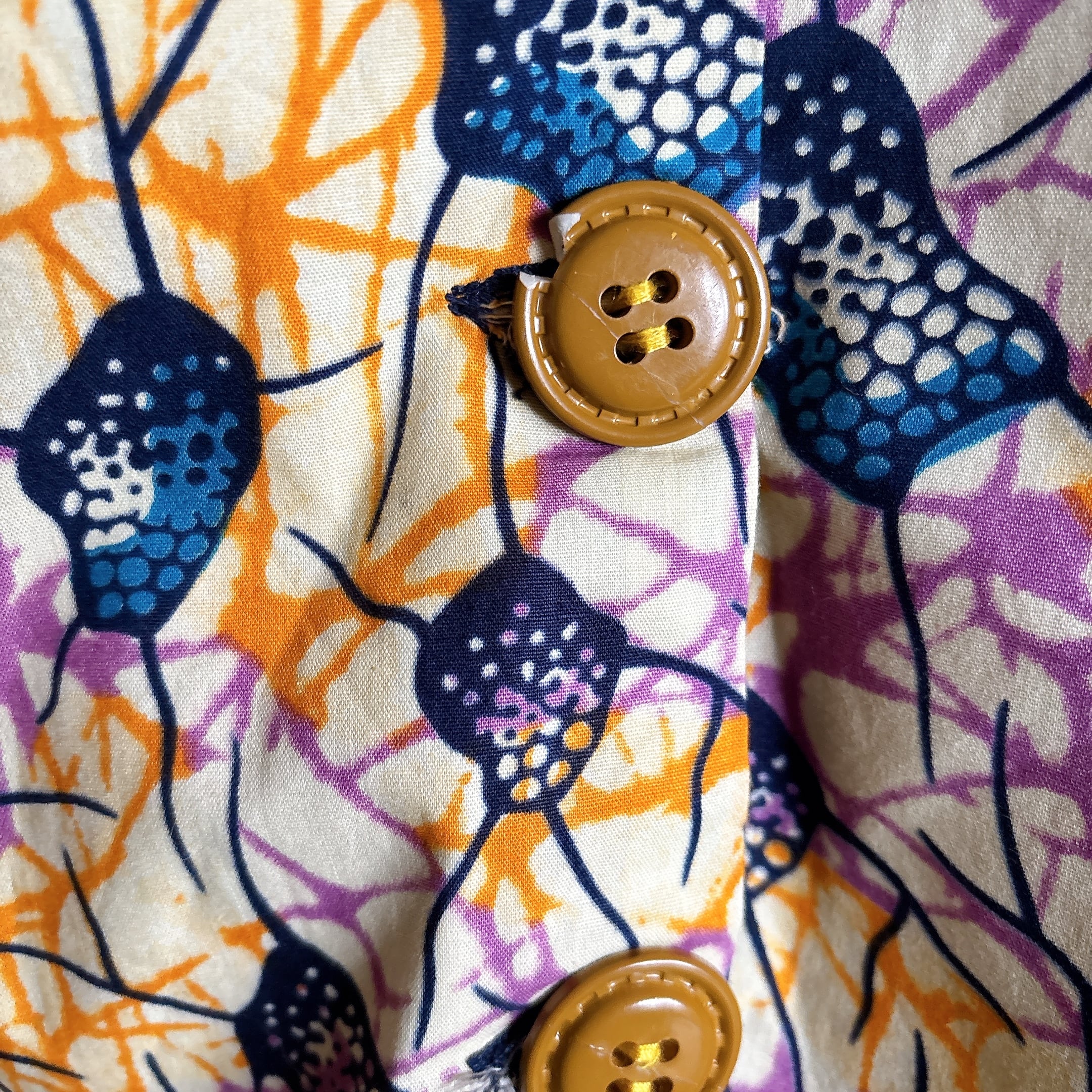 80s 90s アフリカンバティック柄 ヴィンテージ 半袖ブラウス ウッドボタン