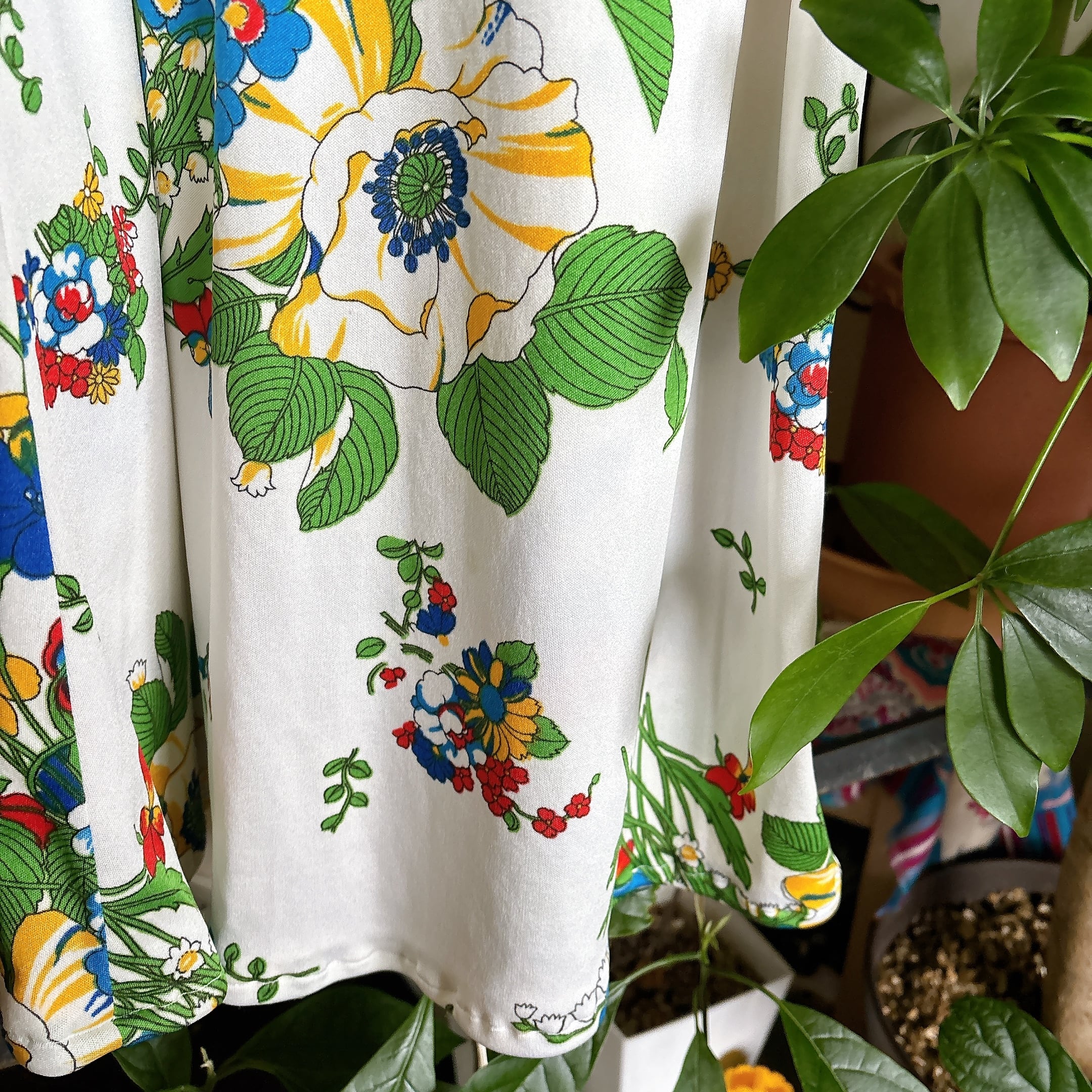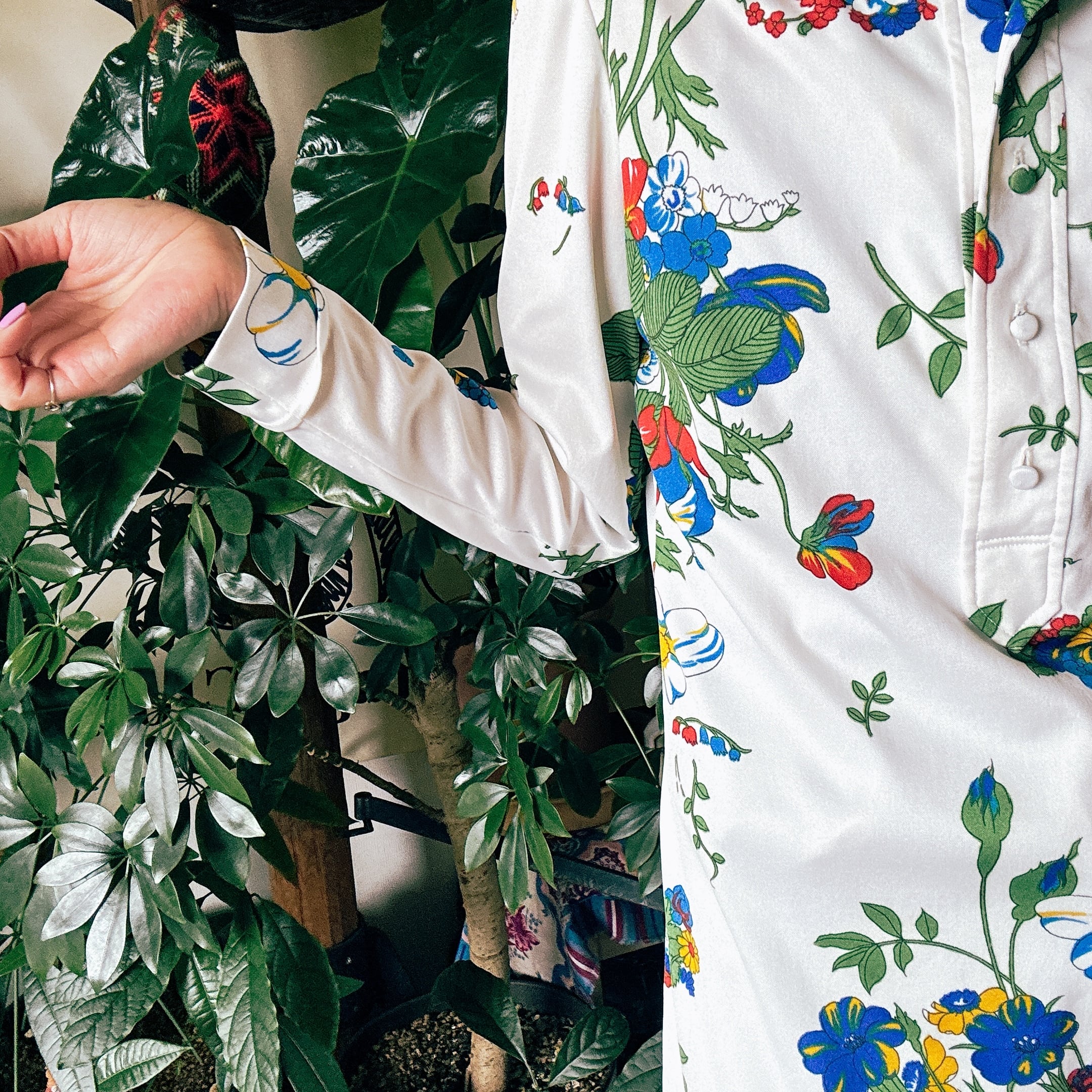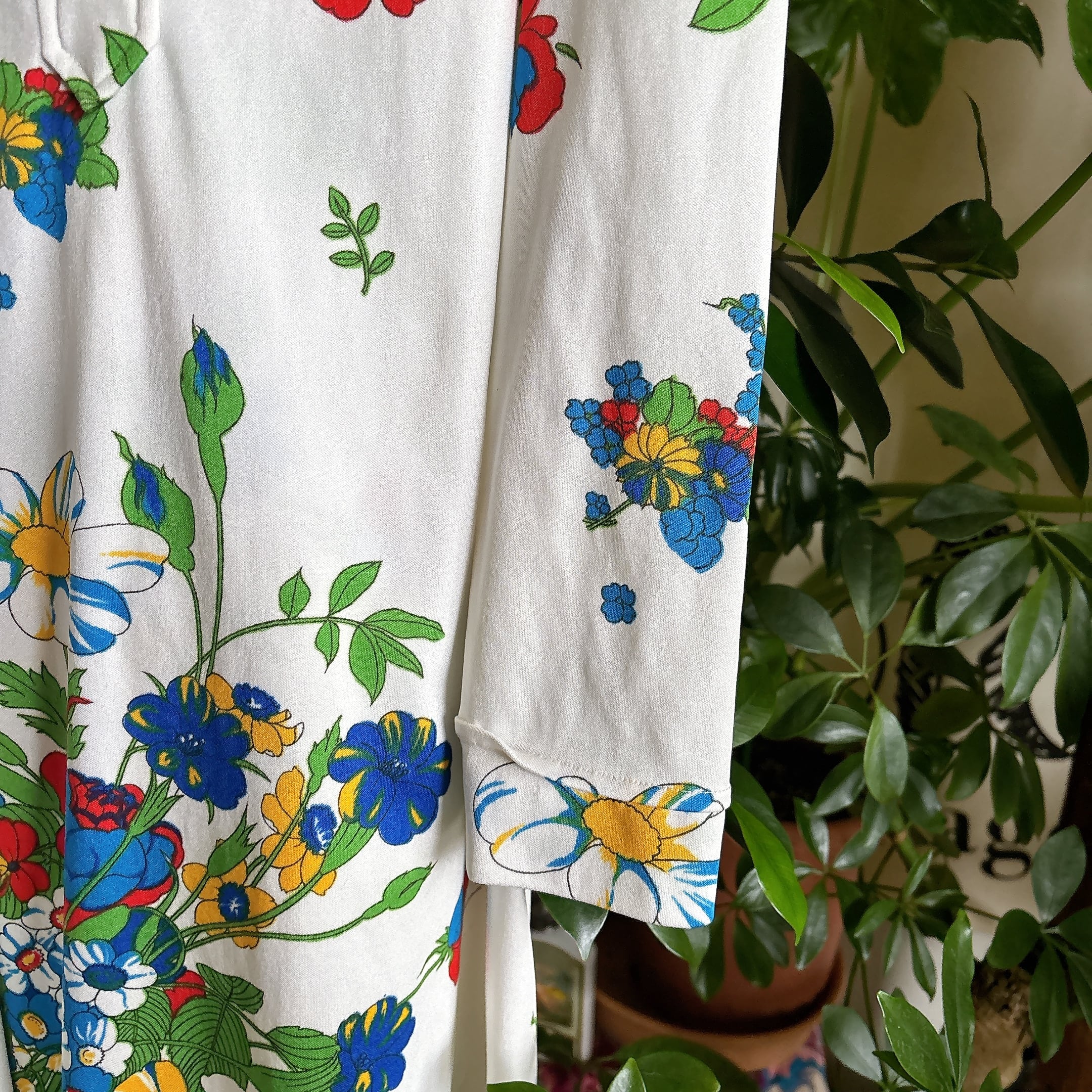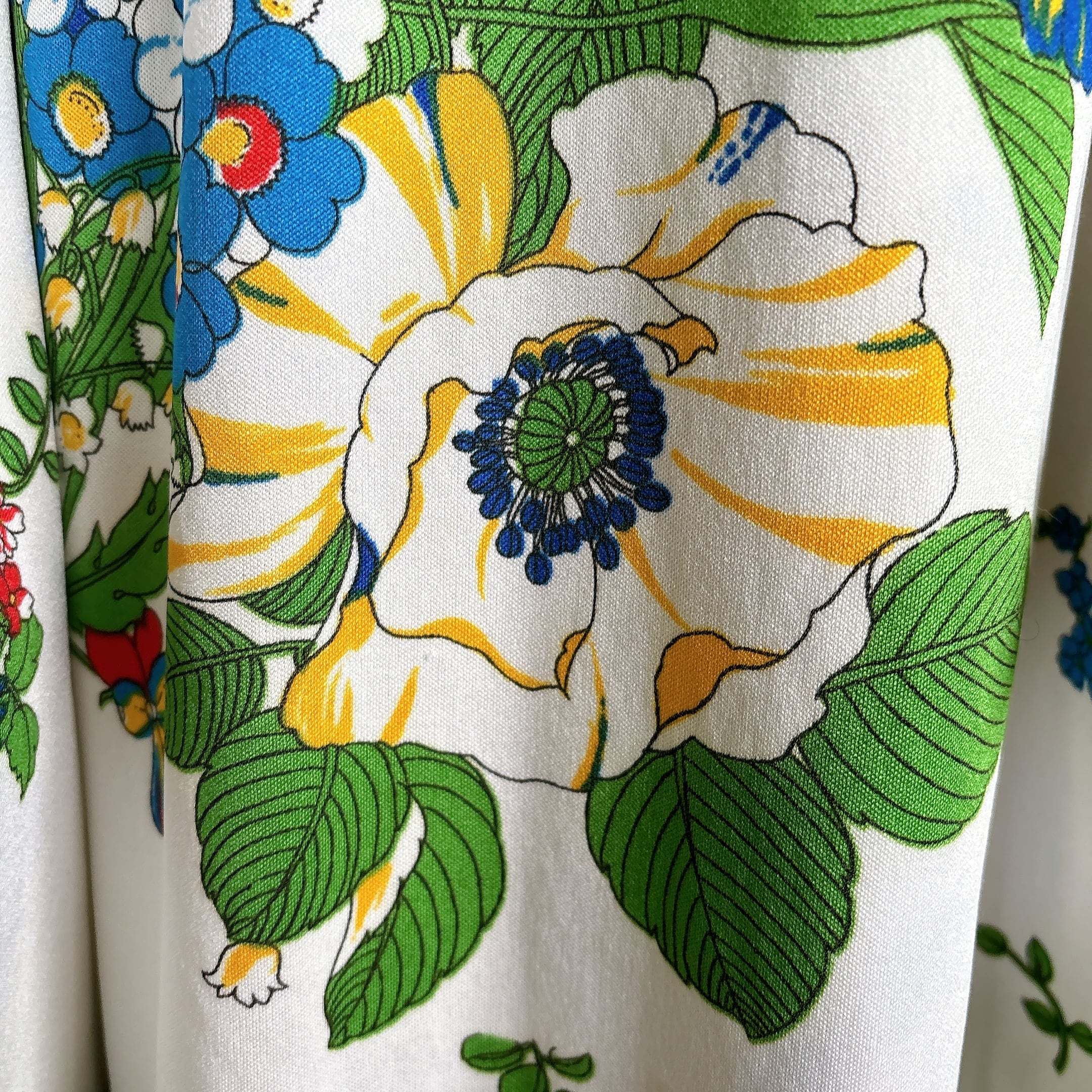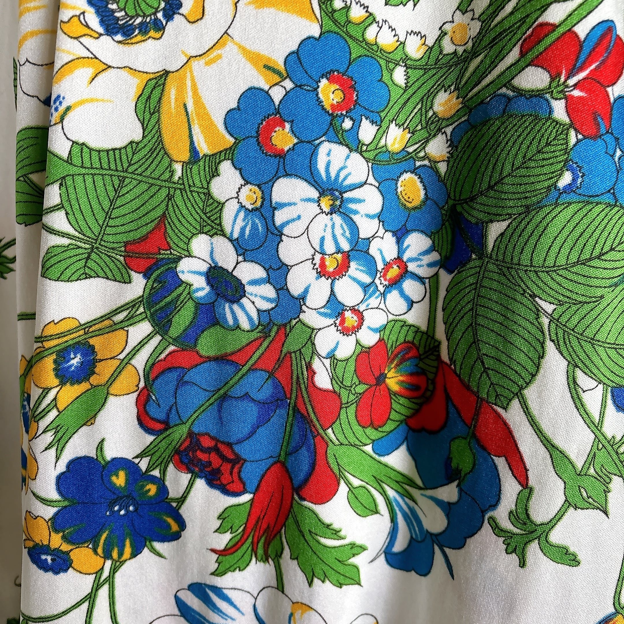 ◾️鮮やかなボタニカルフラワーが全面にあしらわれた、ヴィンテージロングワンピース。