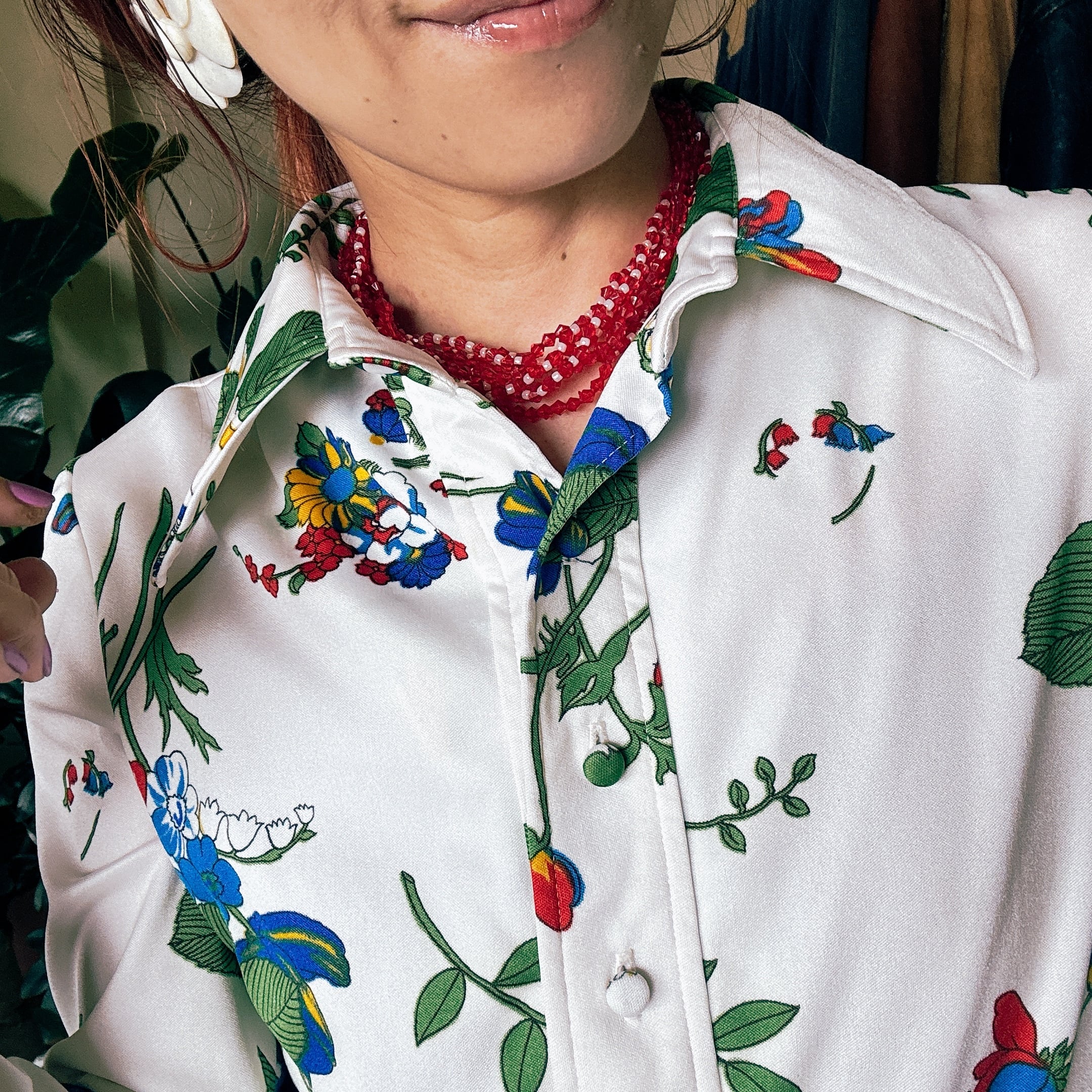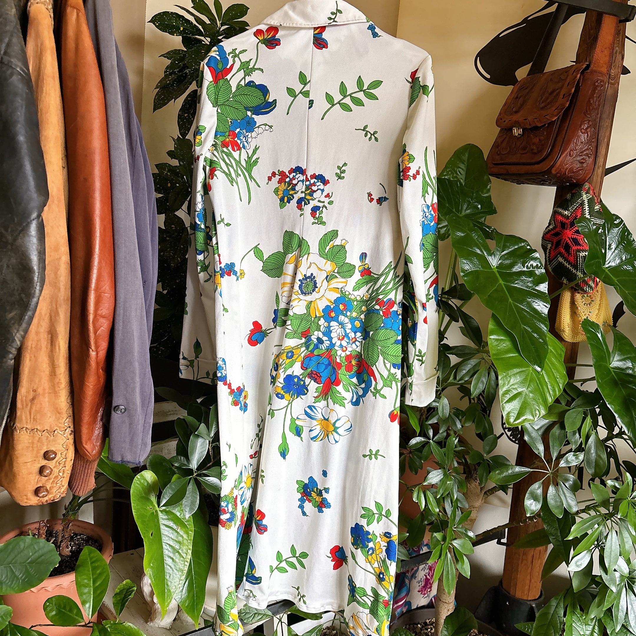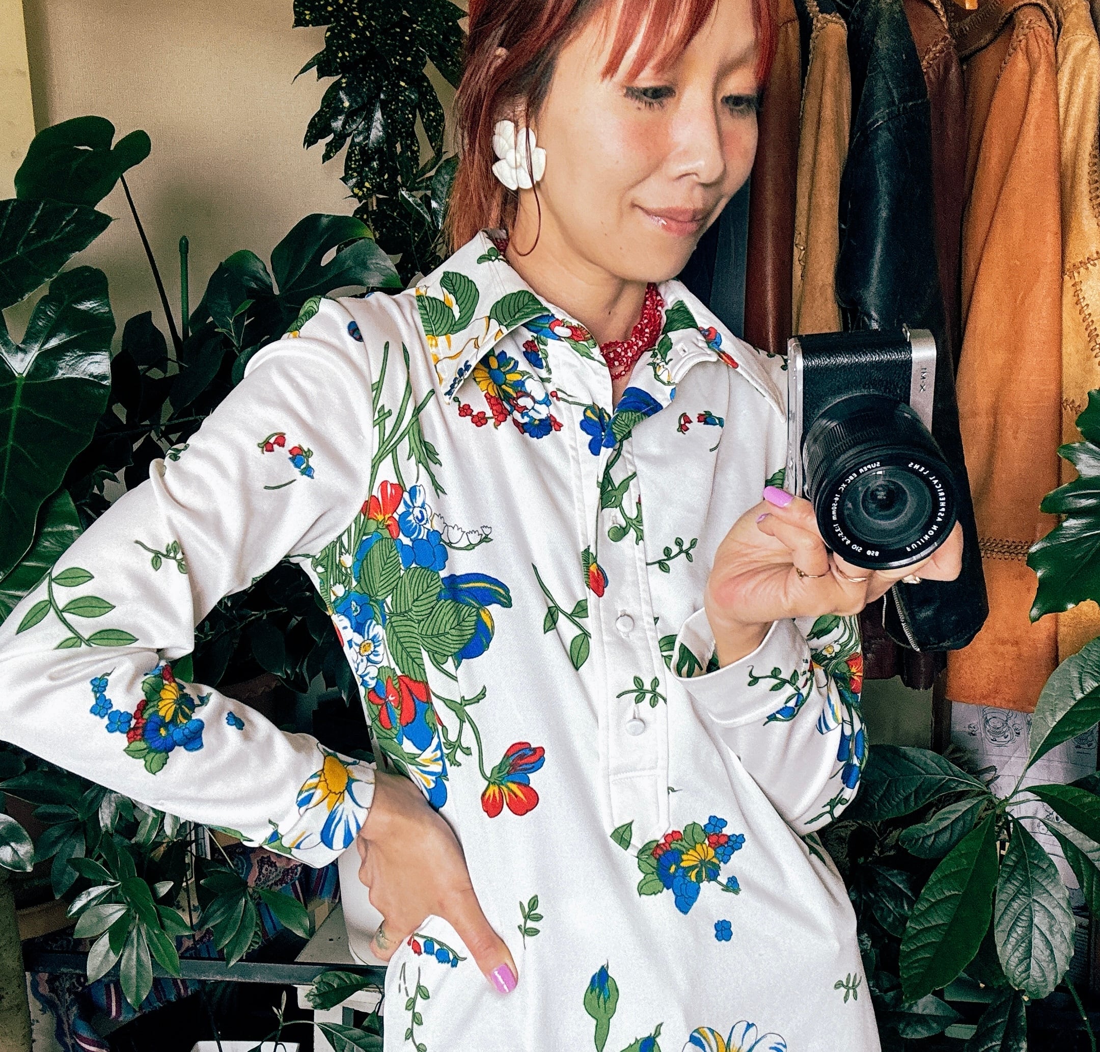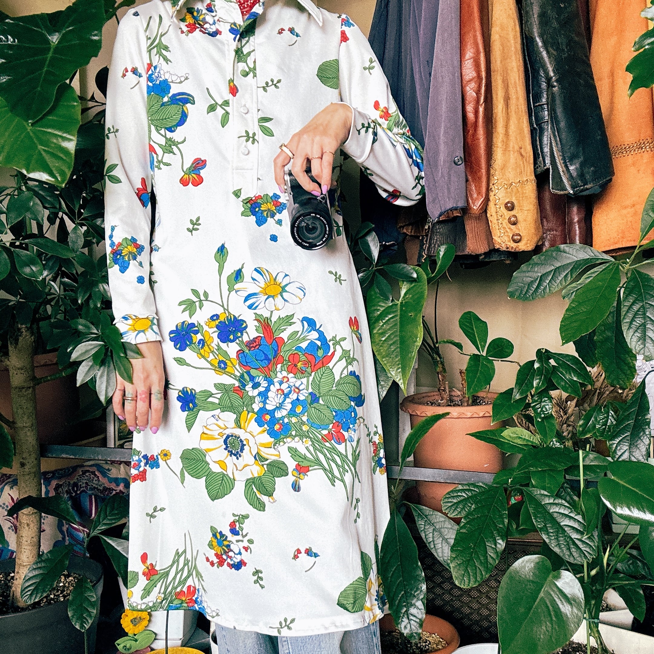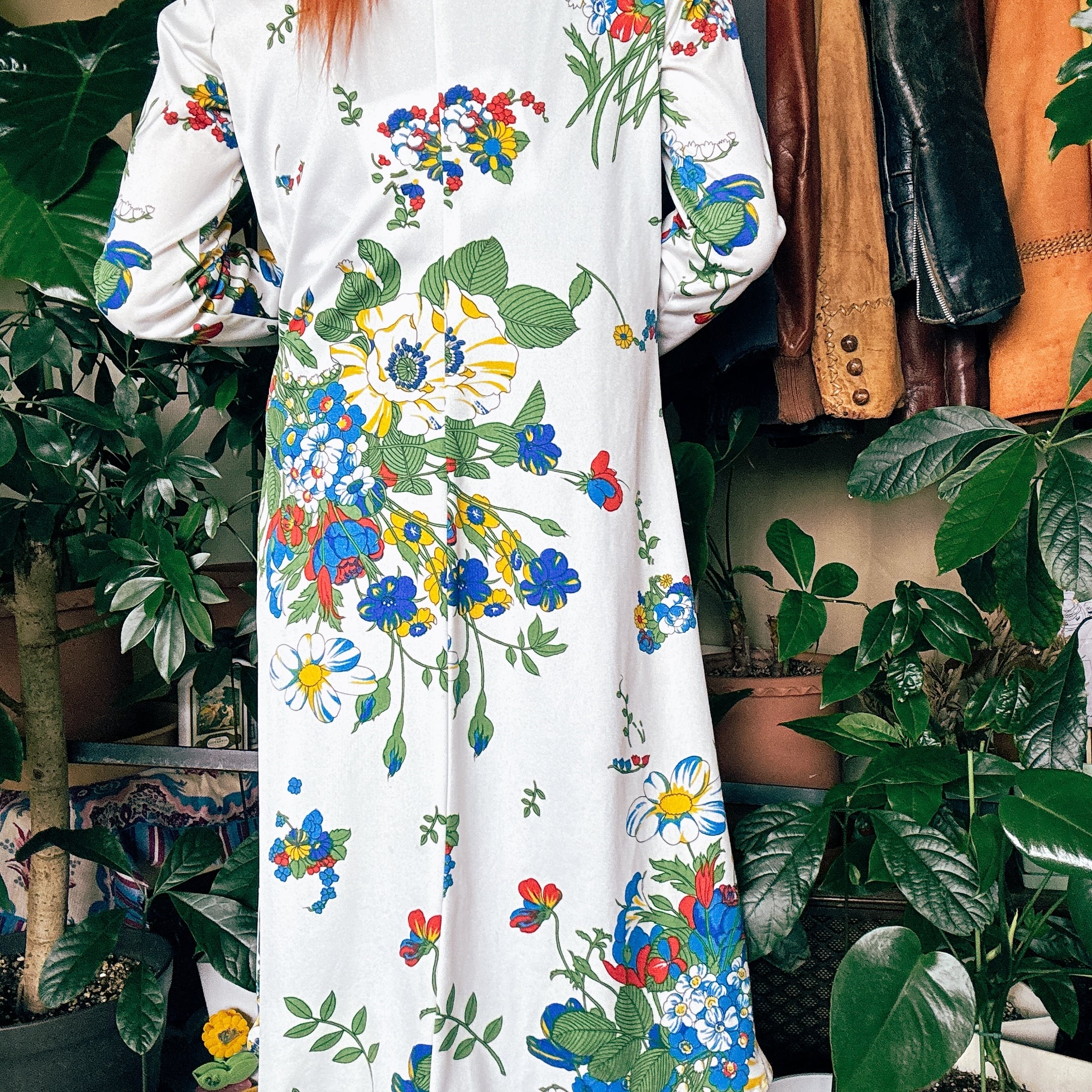 ◾️鮮やかなボタニカルフラワーが全面にあしらわれた、ヴィンテージロングワンピース。