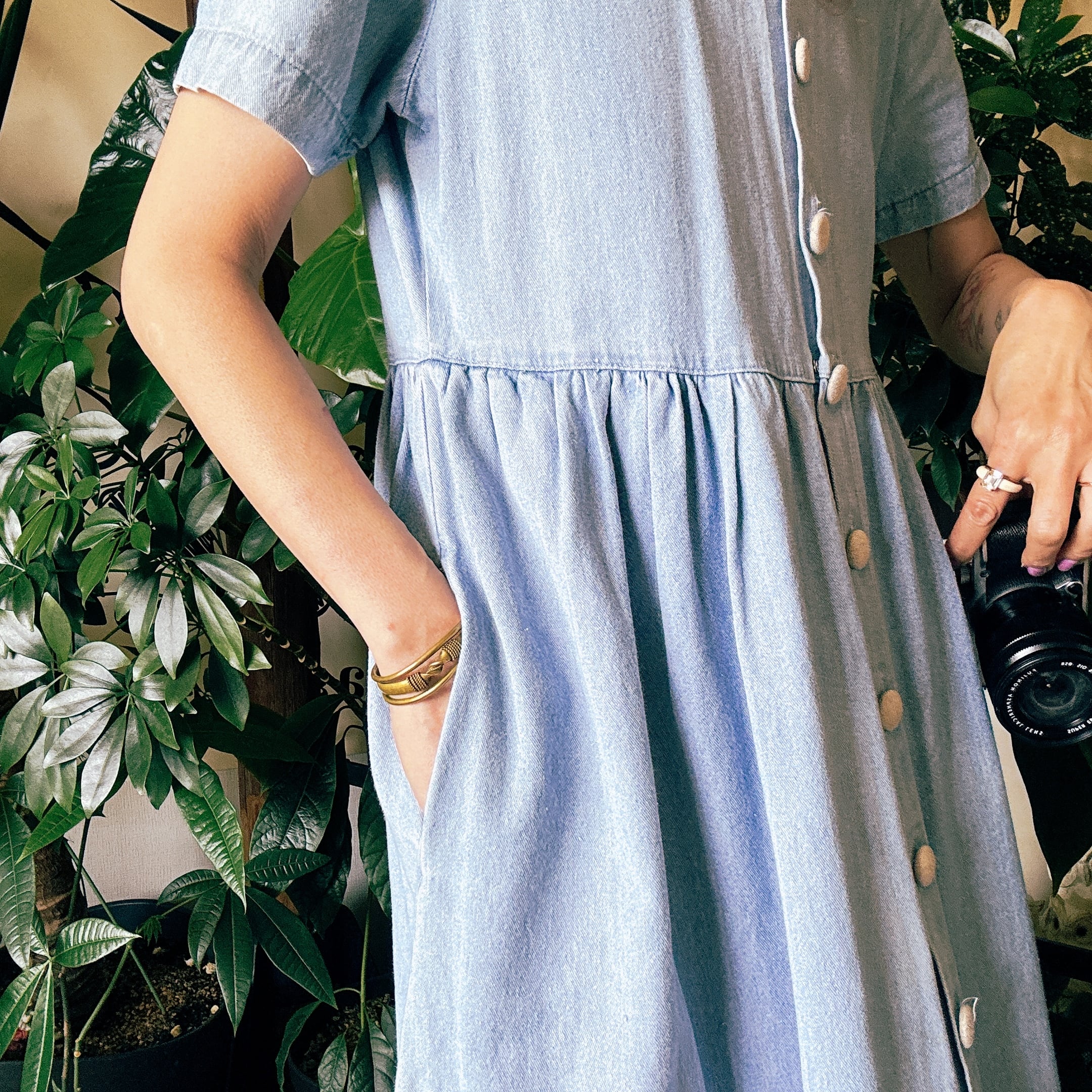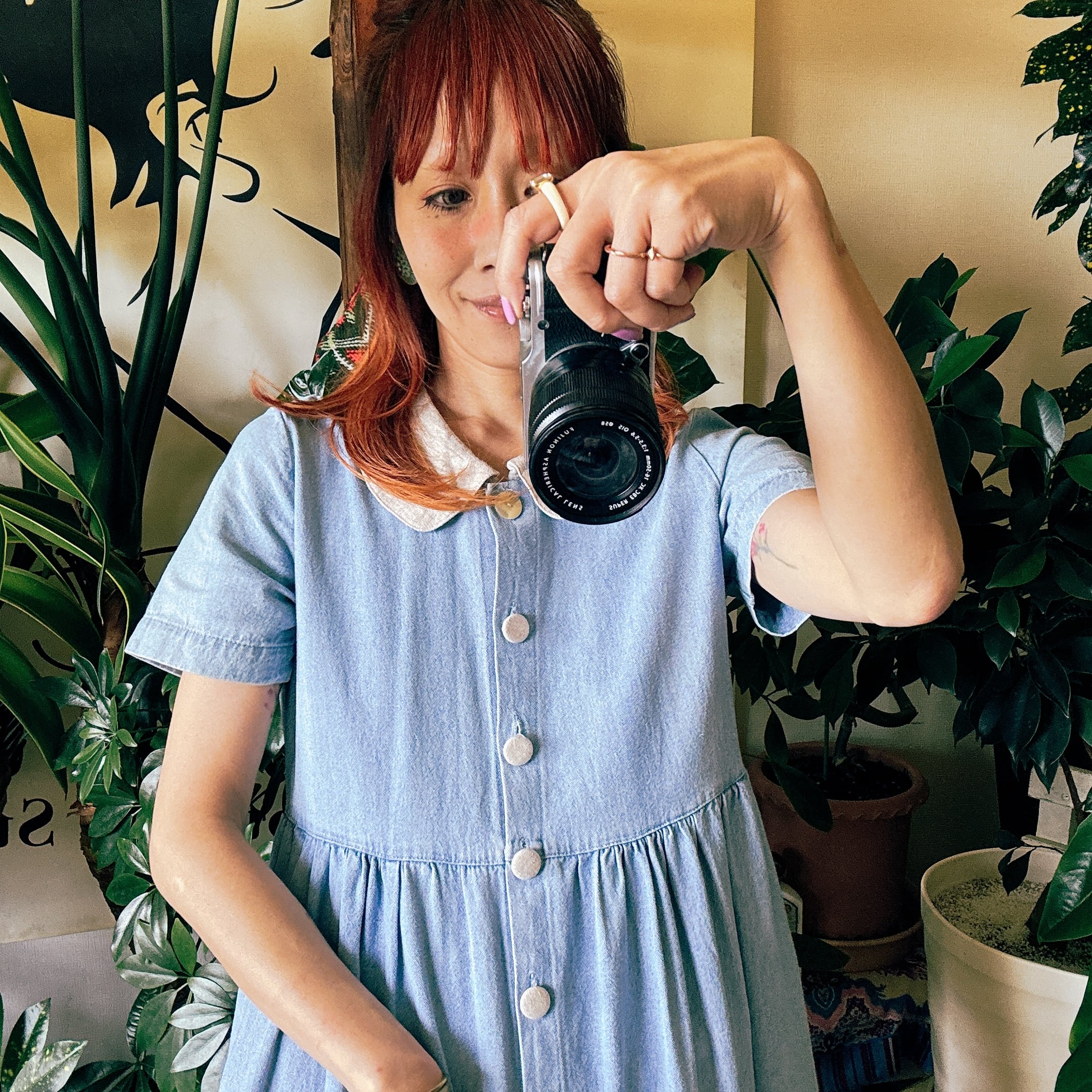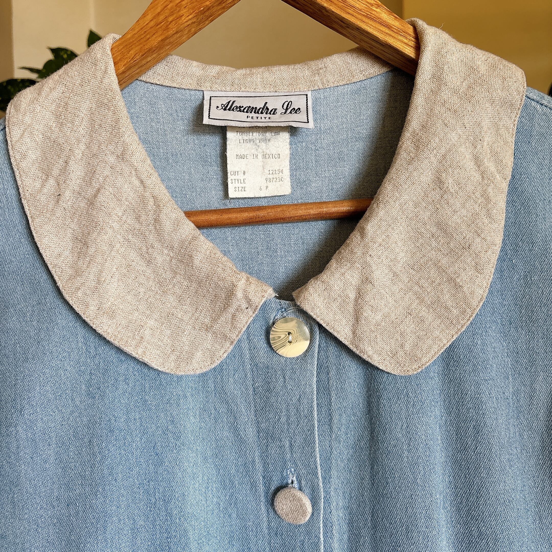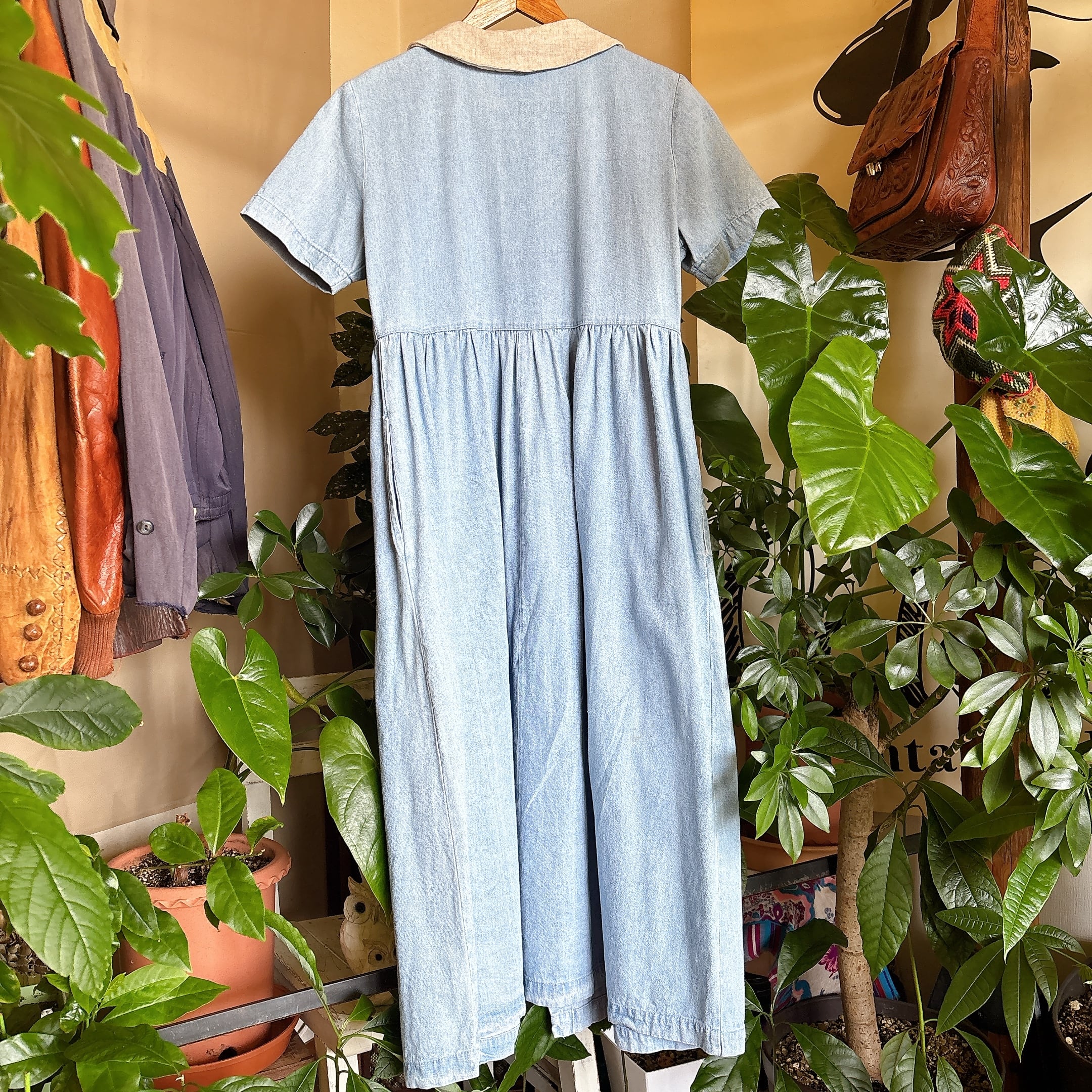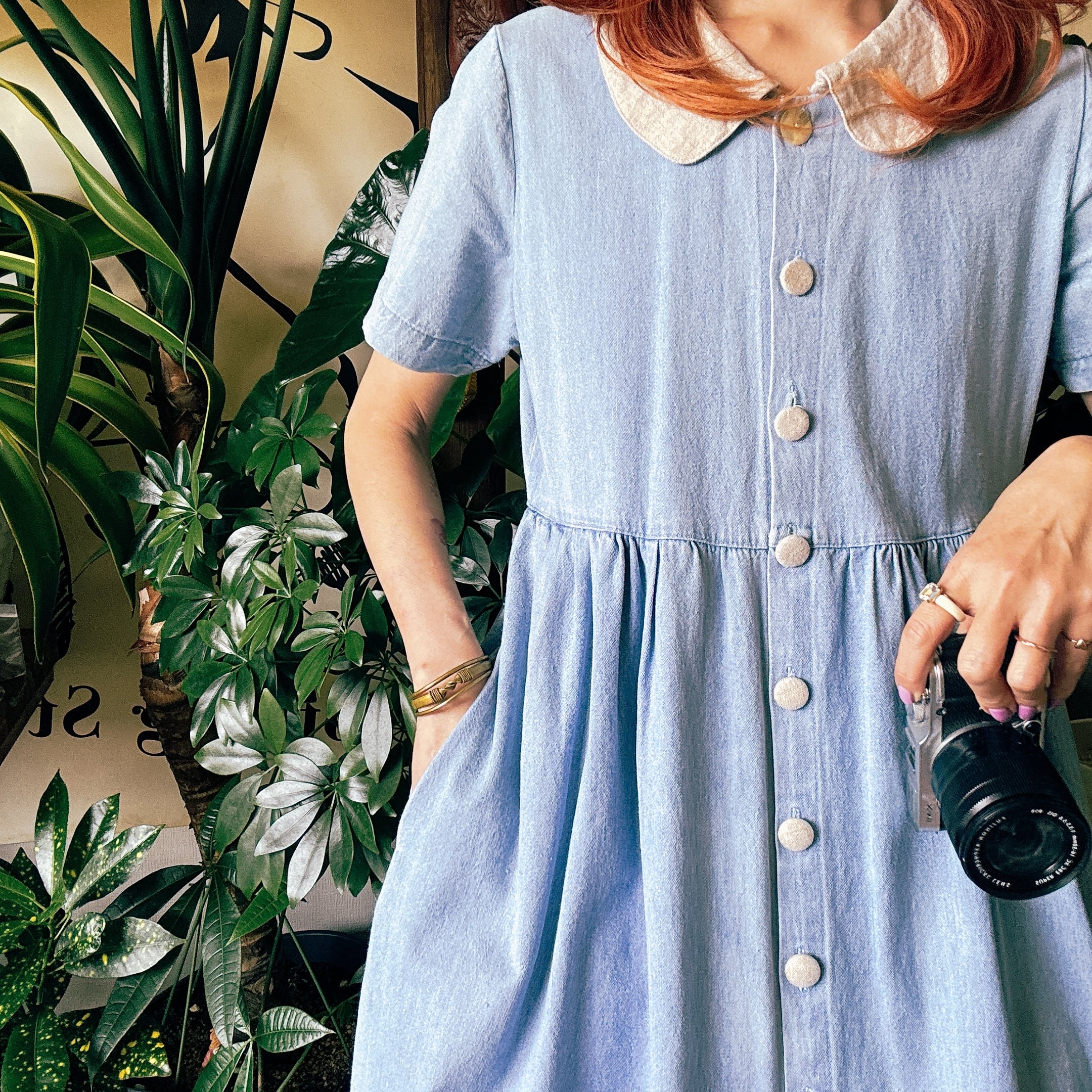 80s ラウンドカラー 丸襟 デニム ワンピース