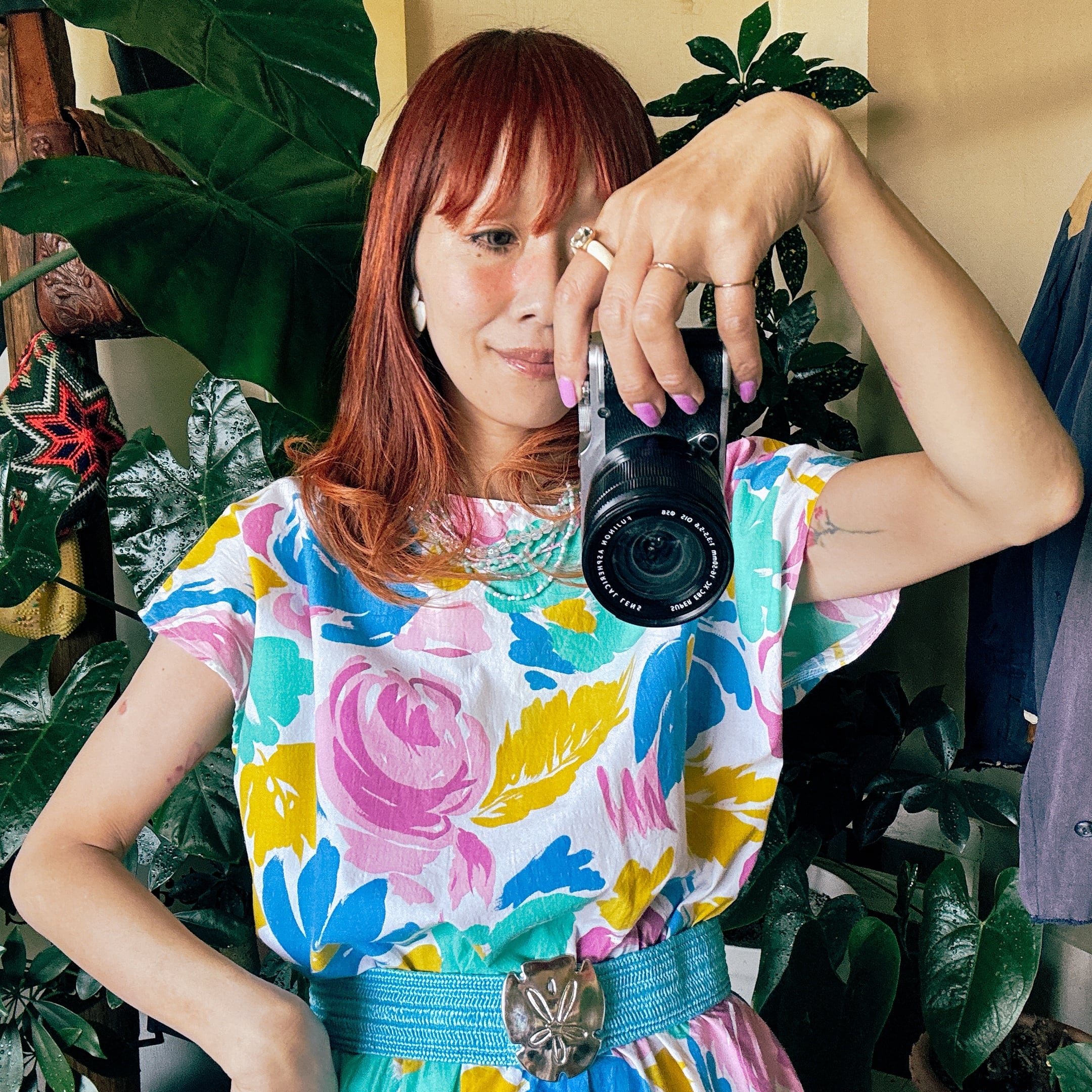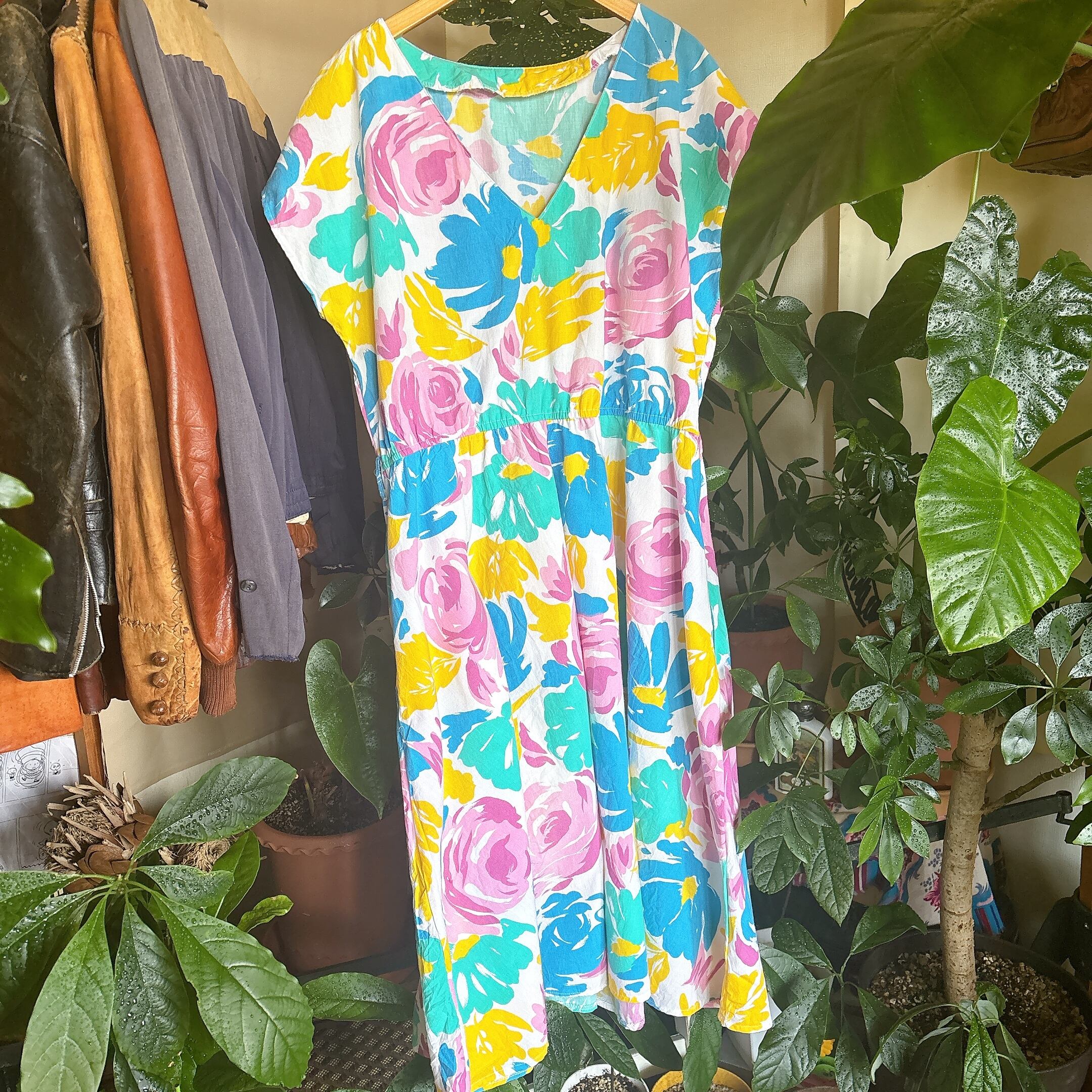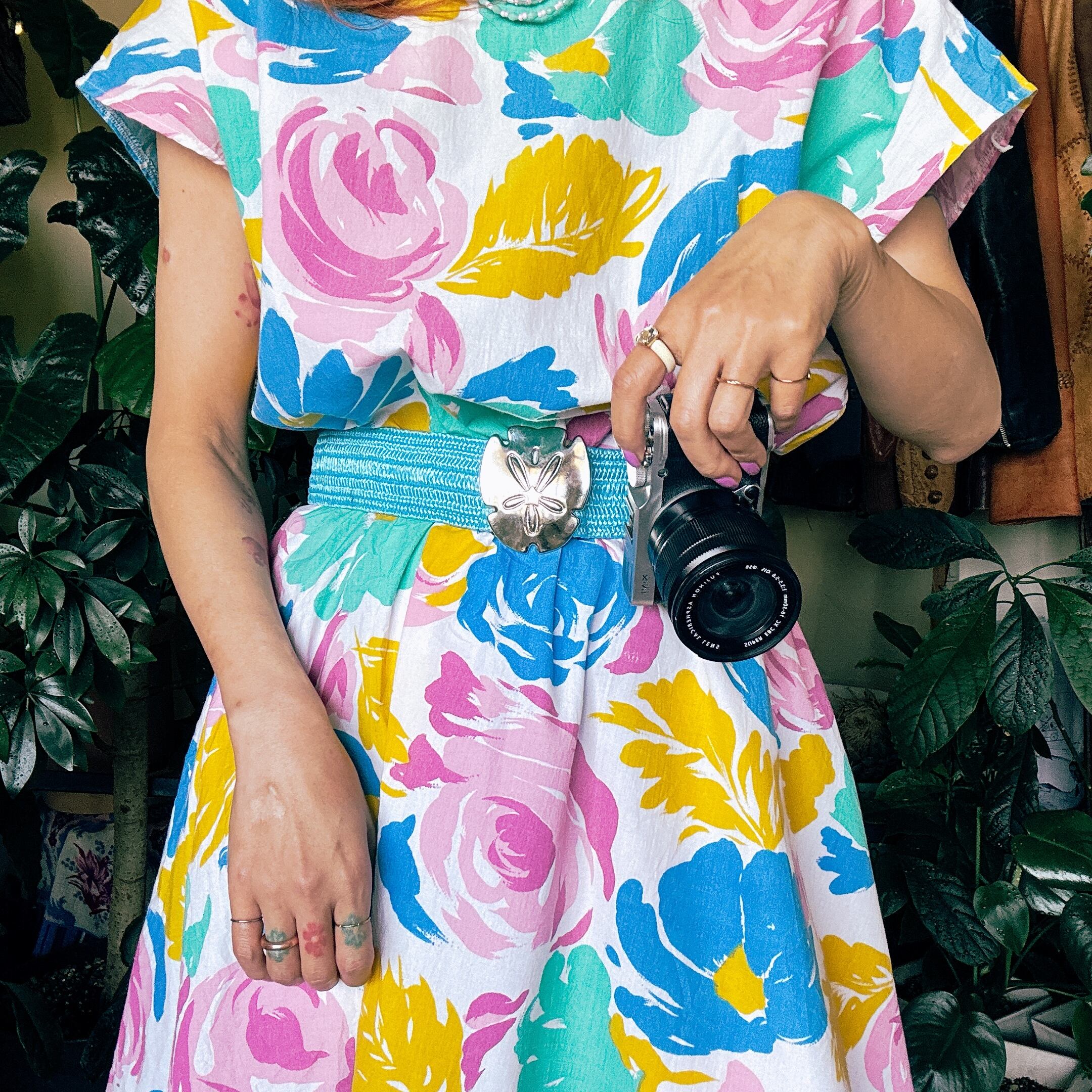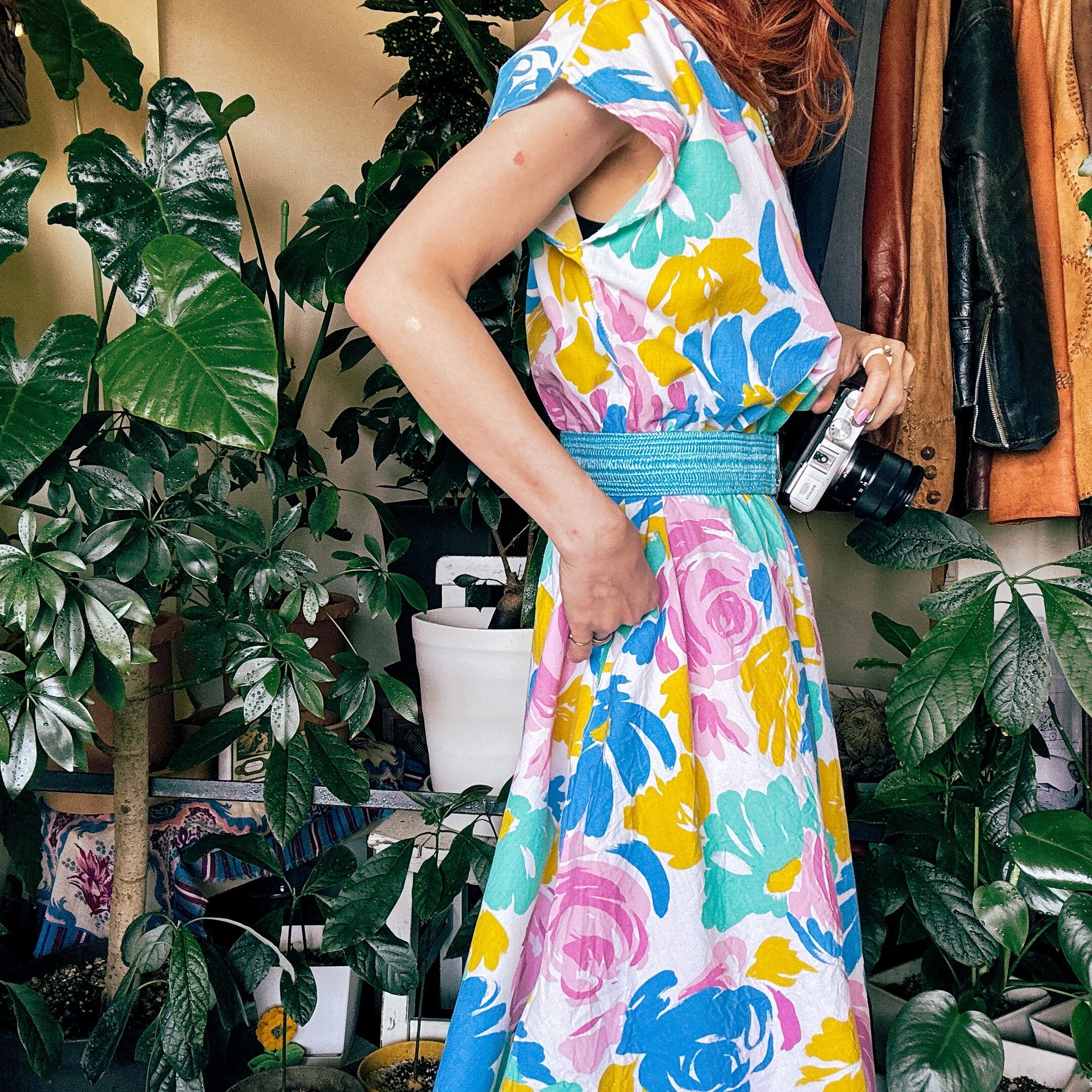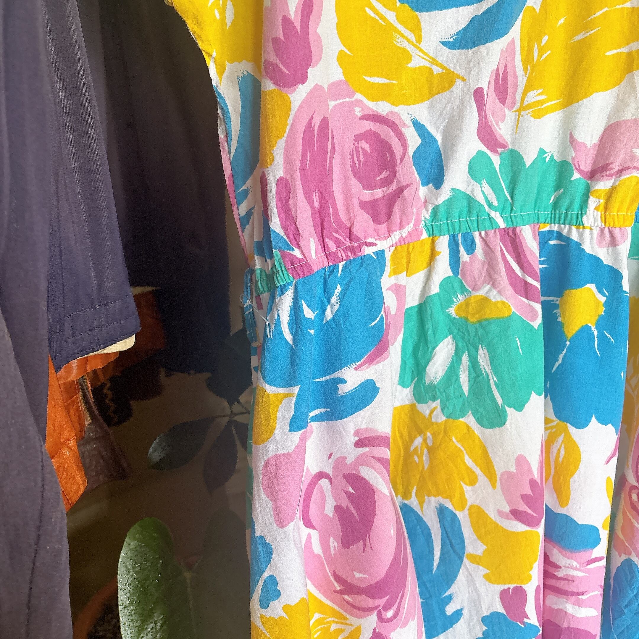 ◾️ やわらかなパステルカラーの花柄が目を引く、ヴィンテージワンピース。