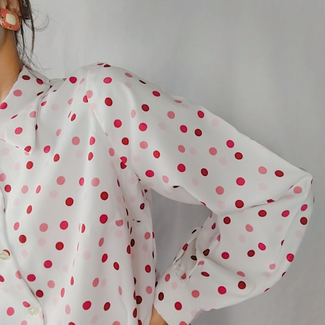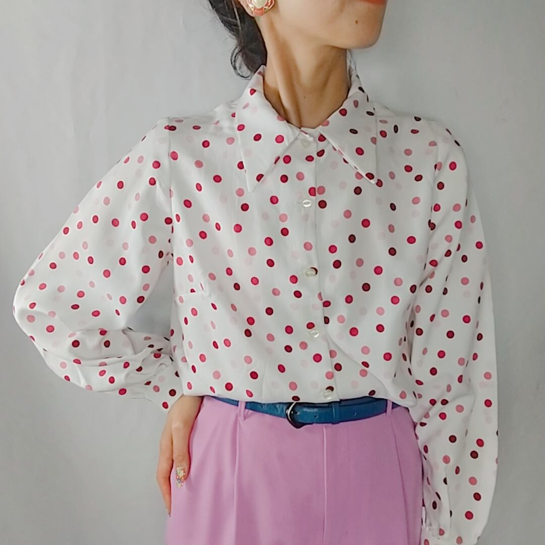 ■甘すぎないカラーが素敵なドットパターンシャツ。