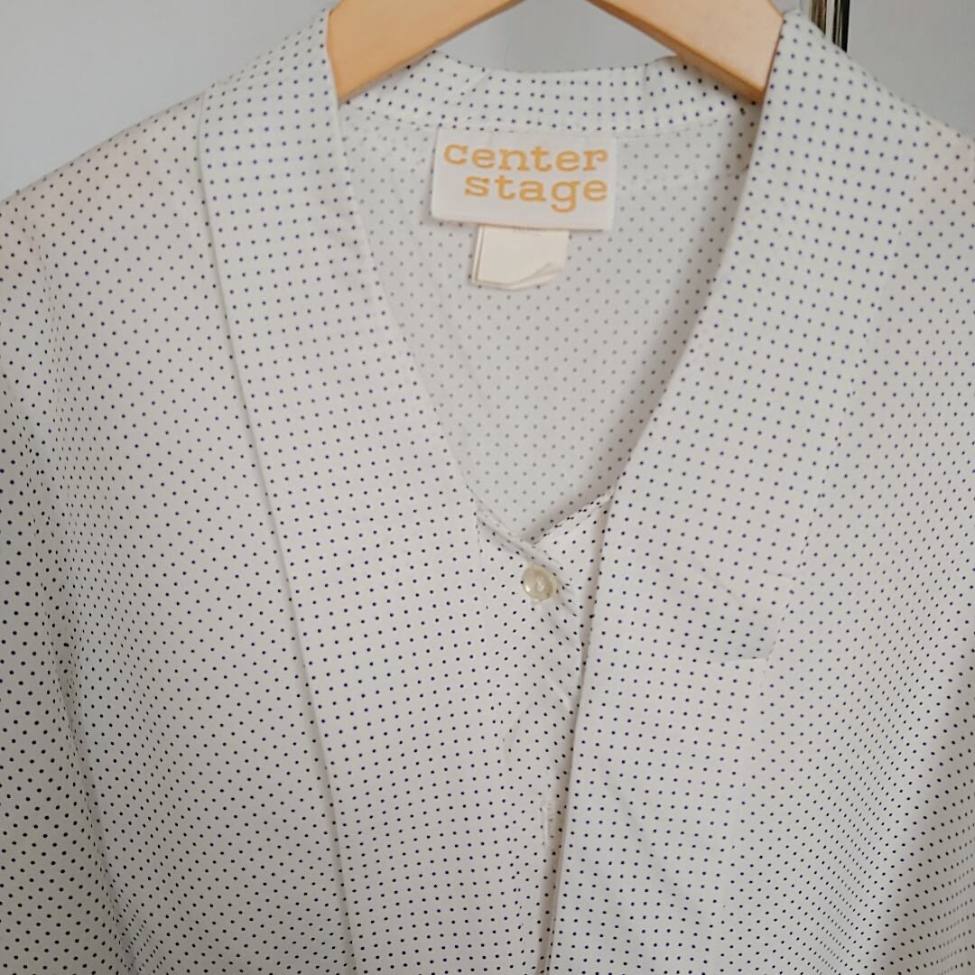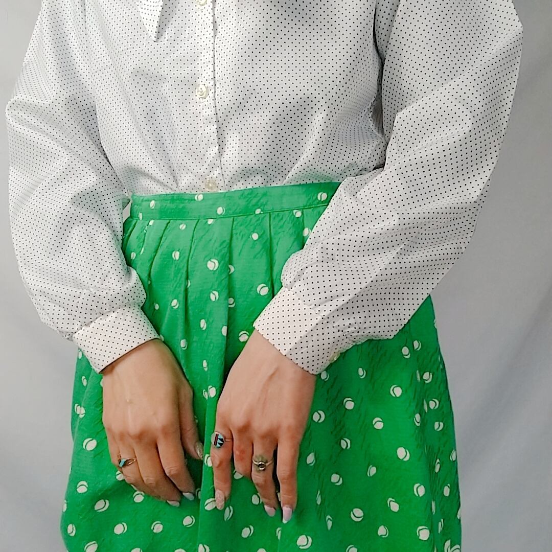 ■上品なピンドットパターンブラウスは女性らしさを引き立たせてくれます。