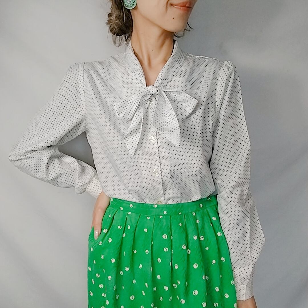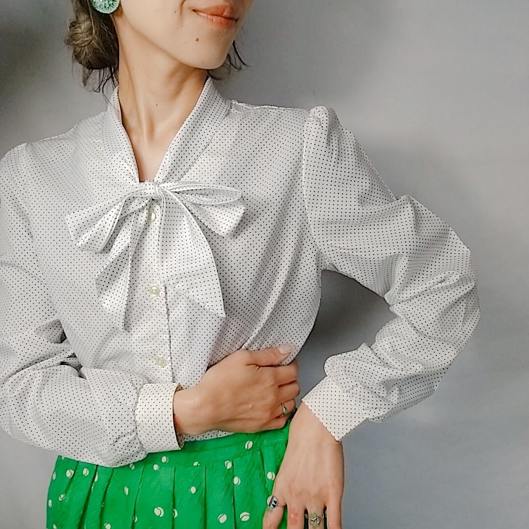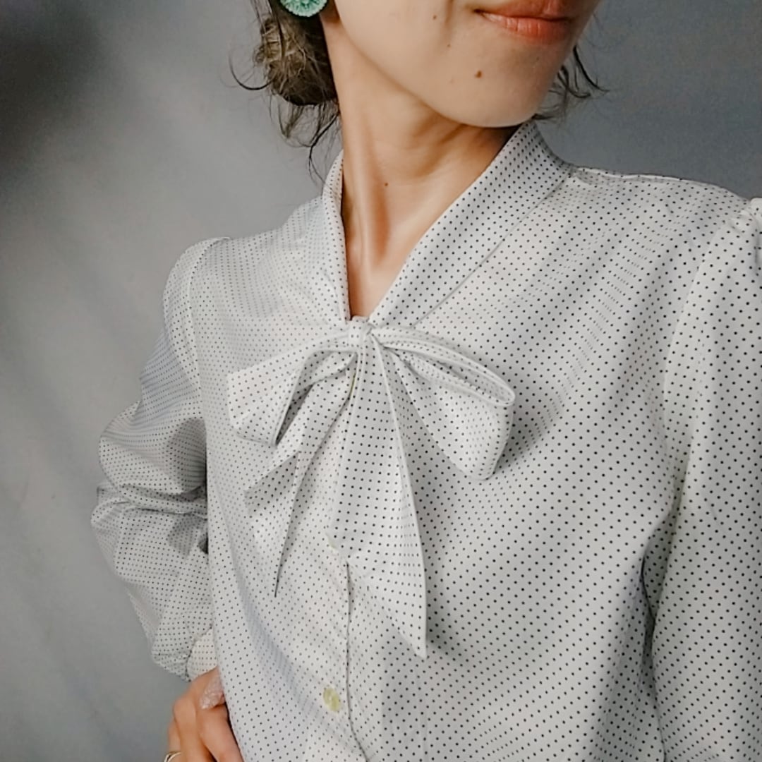 60sPindotPatternTieCollarBlouse