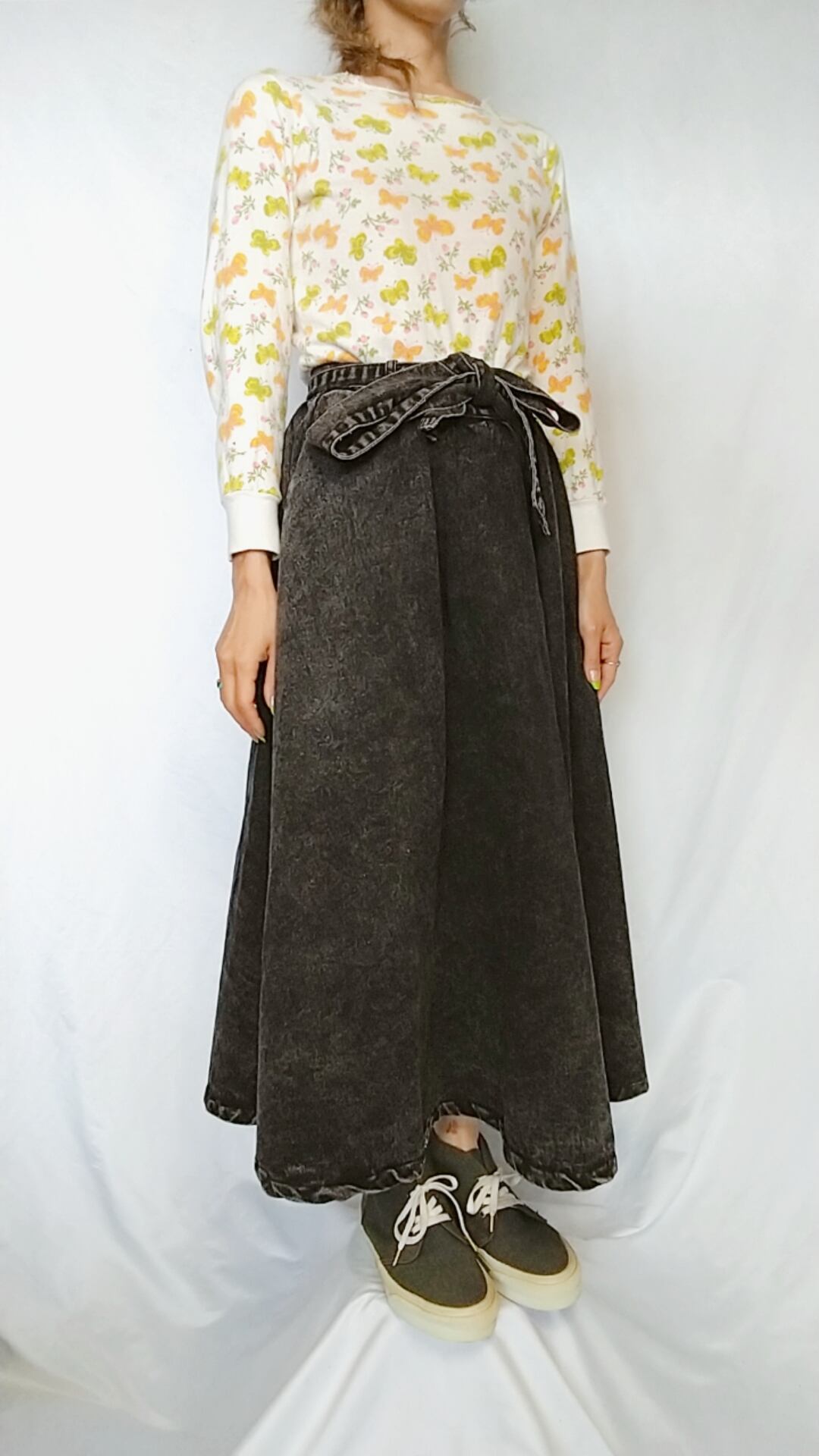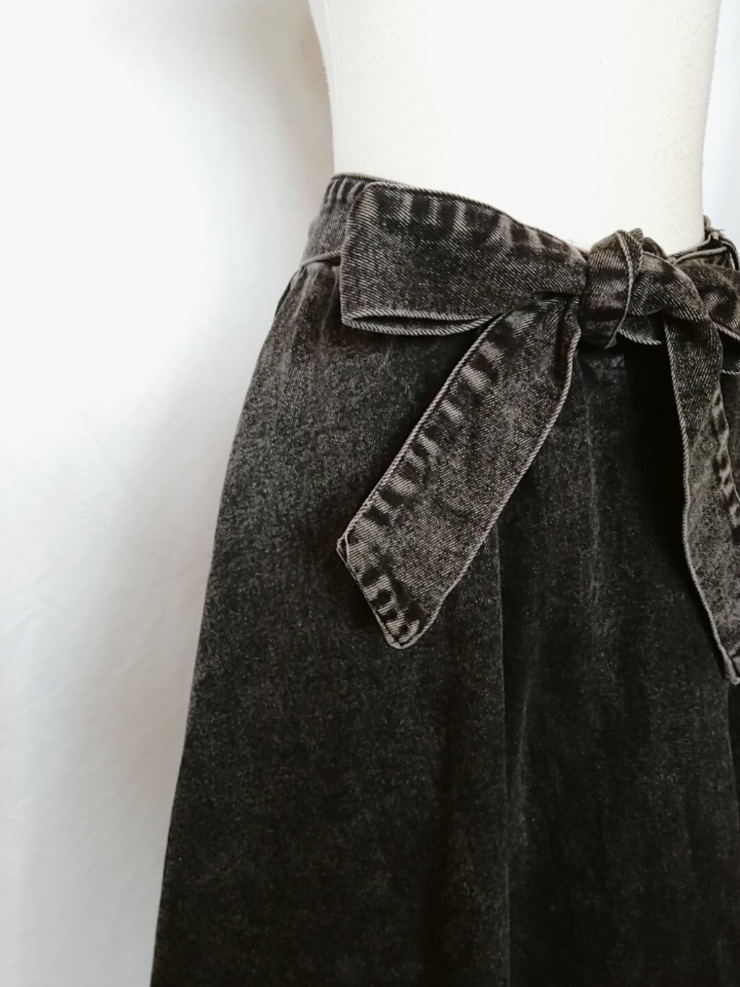 ウエストのリボンがカジュアル過ぎない仕上がりにしてくれます。お紐は取り外し可能です。