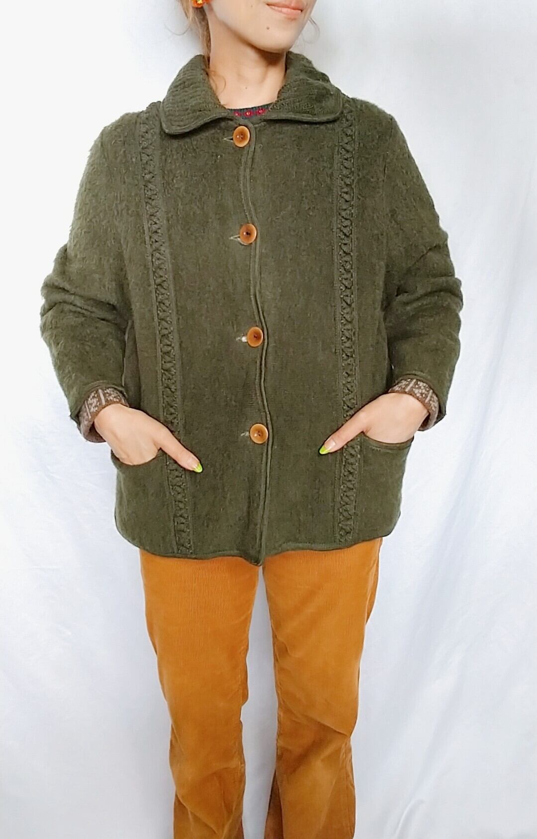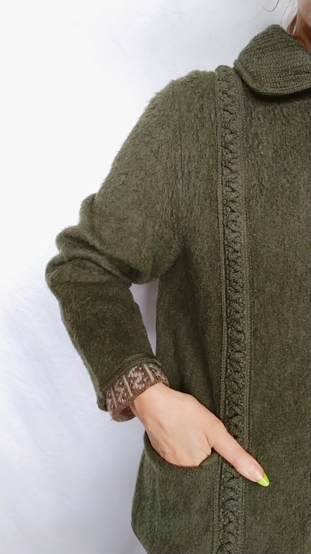 ホワホワと柔らかく、軽く、フリースに近い肌触りです。ウール素材で保温性もバッチリ◎*。カーキカラー