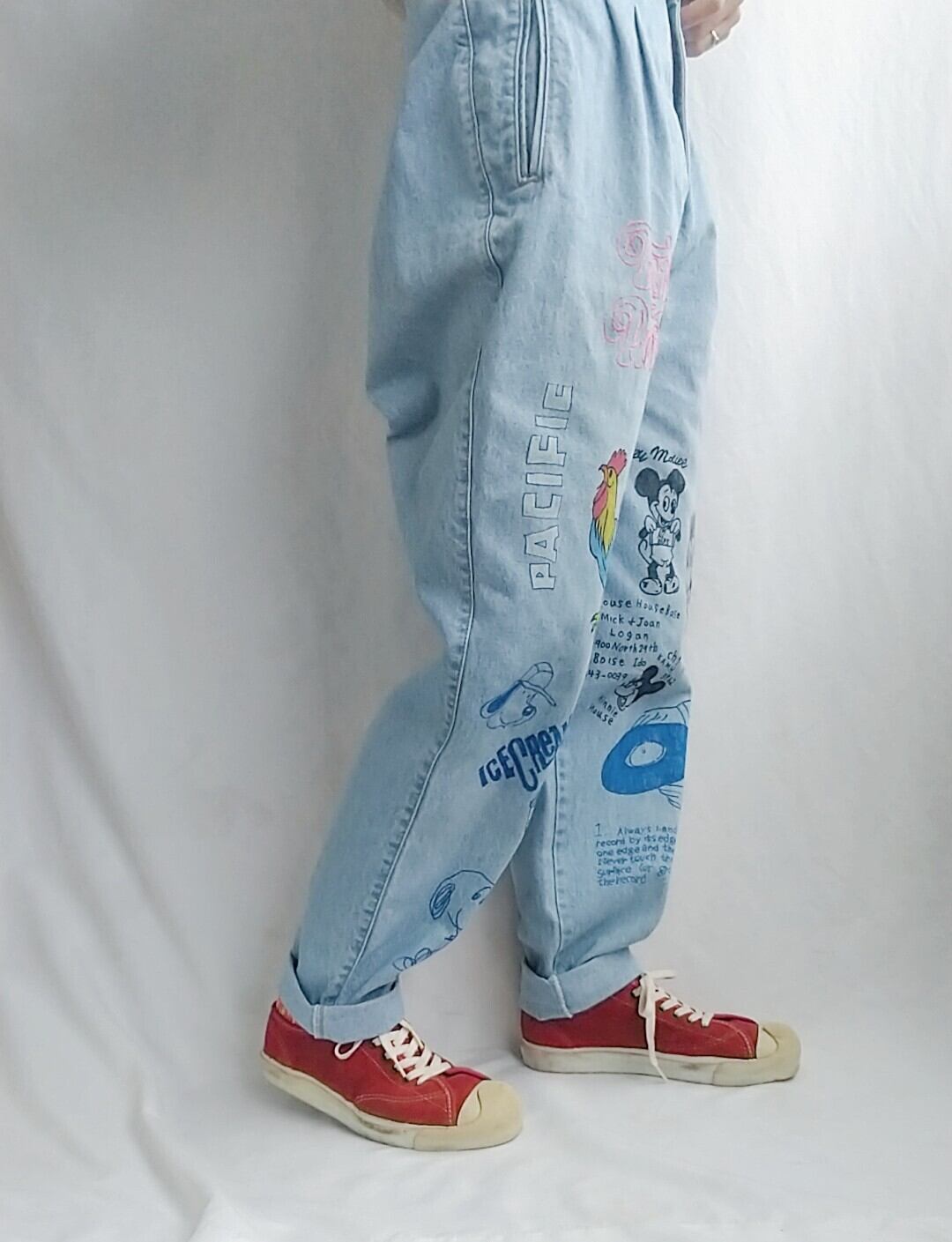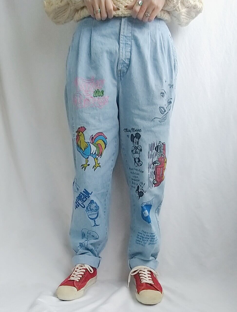 ■ペイントについて:布用カラーペンを使用しております。当店でのクリーニングの際は色落ちはございませんてしたが稀に色落ち、滲みが出る場合もあるかと思いますので念のため他の衣類とのクリーニングは避けて頂く事を推奨致します。経年変化により色褪せてくる可能性がございます。予め、ご了承下さい。