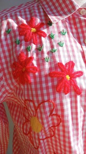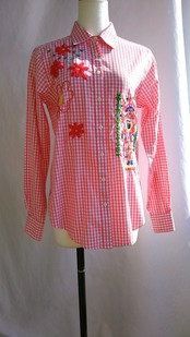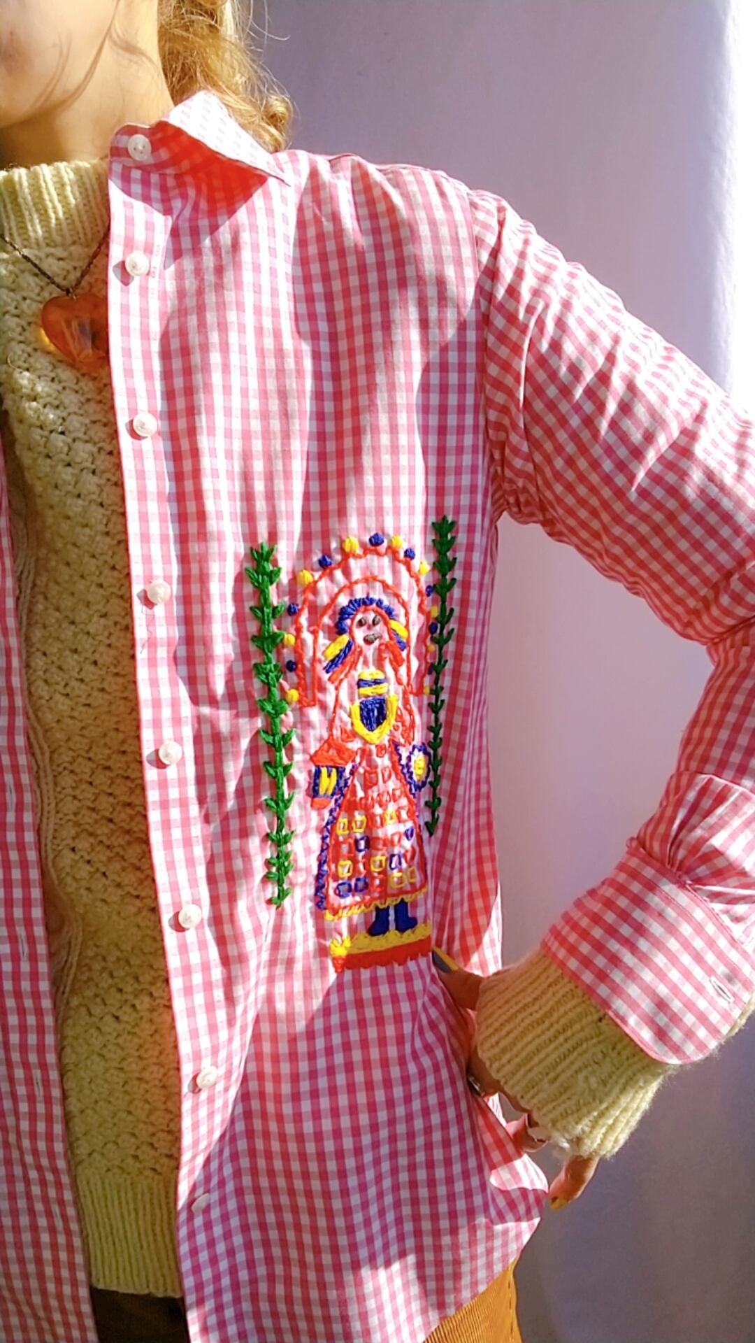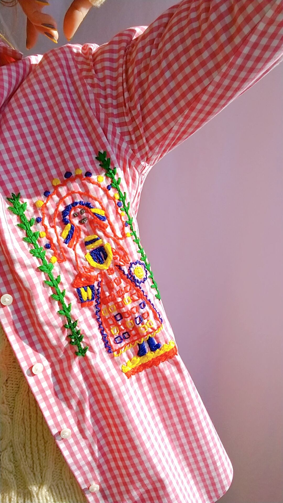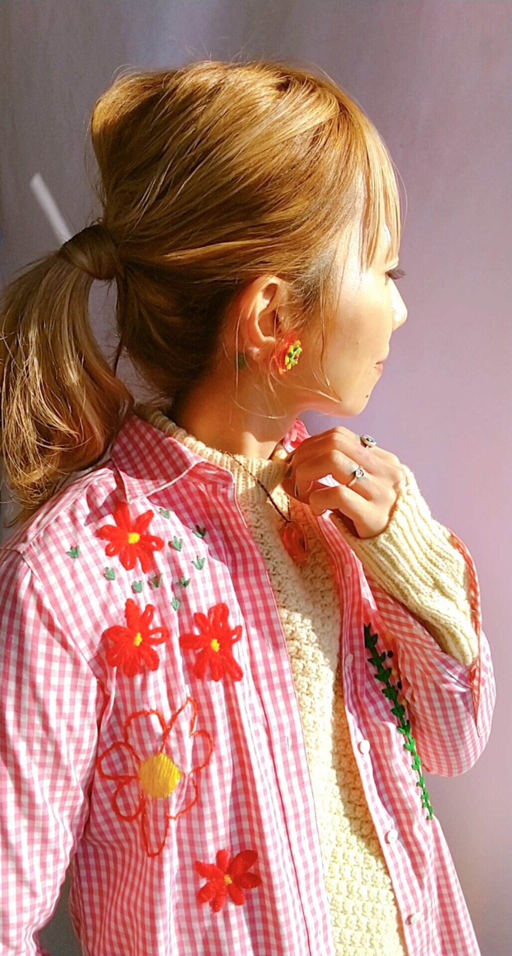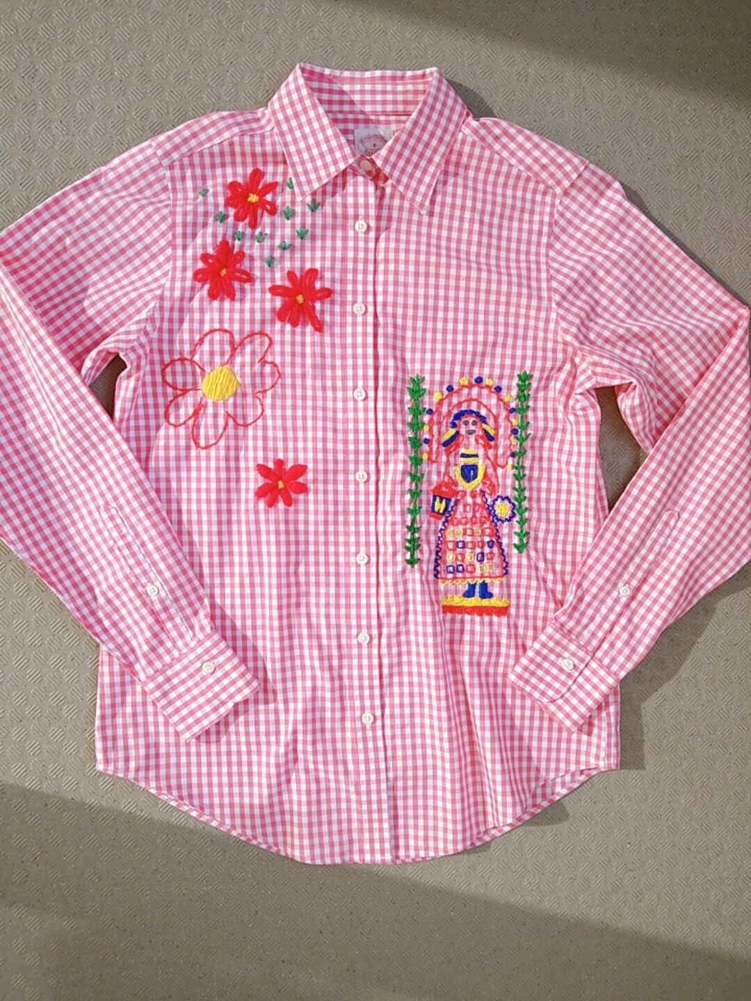 ■ギンガムチェックの雰囲気をそのままに、カラフルに施された刺繍が◎*。春先迄長くお使い頂ける1枚。スカートやドレスとの相性は勿論ですがデニム等カジュアルアイテムとスタイリングして頂いても◎*。T-シャツに羽織るだけで雰囲気のあるシャツです。