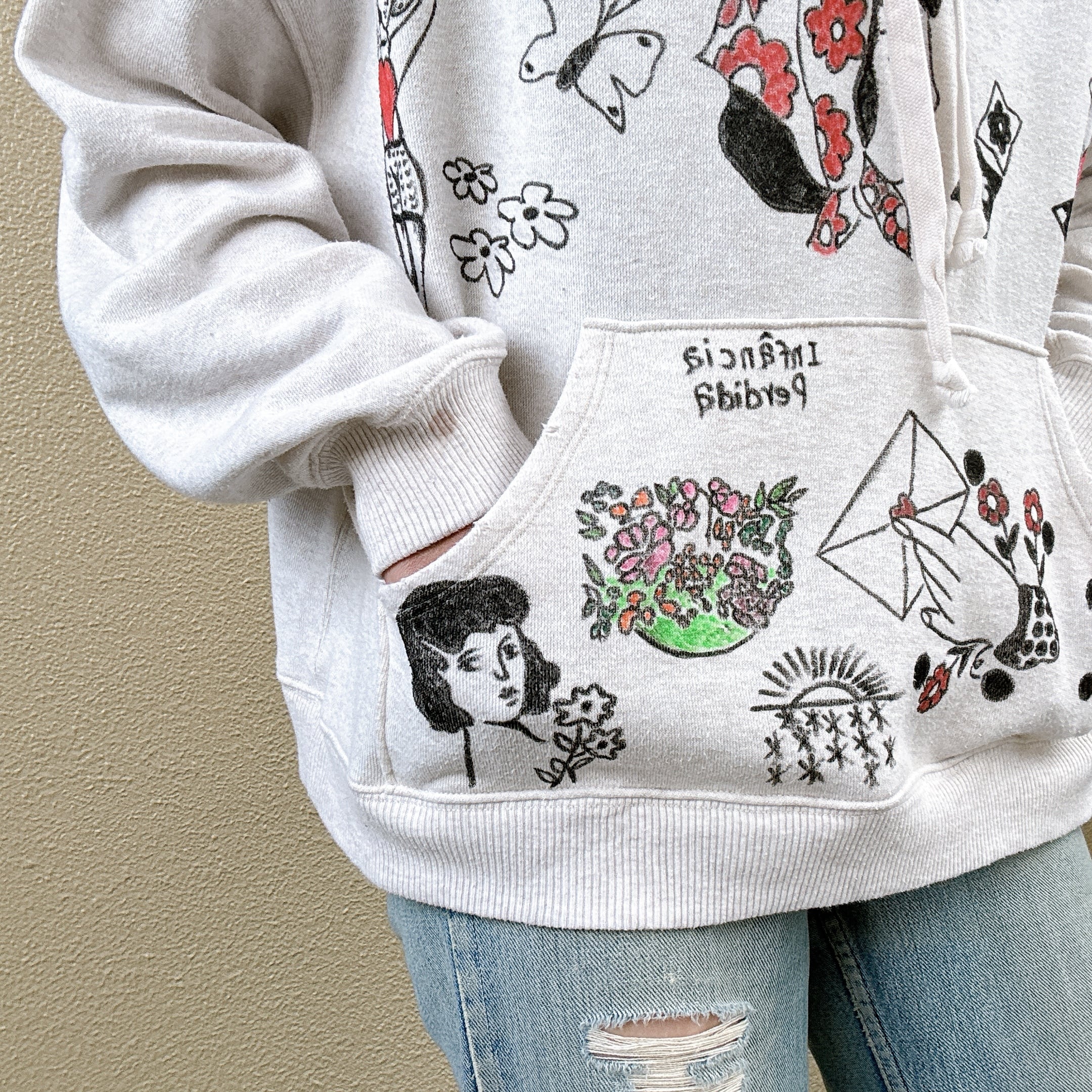 ■シーズンレスにお使い頂けるフーディ。ジャケットを羽織ってフードを出すスタイリングも個人的に可愛いなぁと思います。usedならではの着用感はございますが目立つ汚れはペイントでカバーしました。ユニセックスにお使い頂ける1枚。