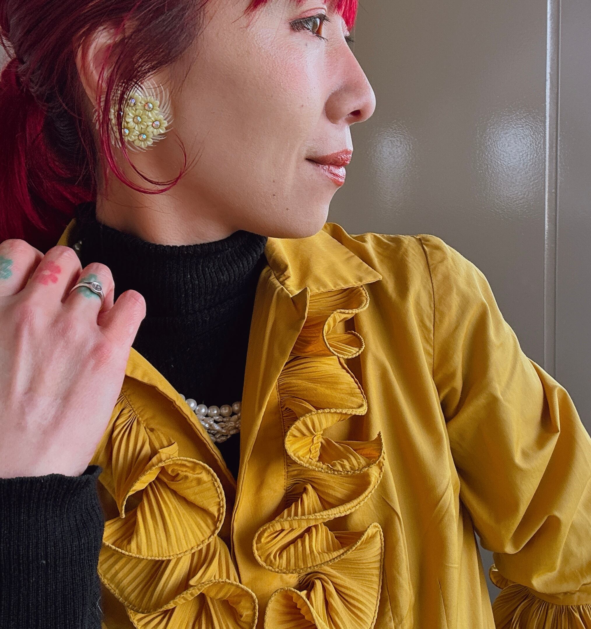 ▪️マスタードイエローが雰囲気の良いドレスです。